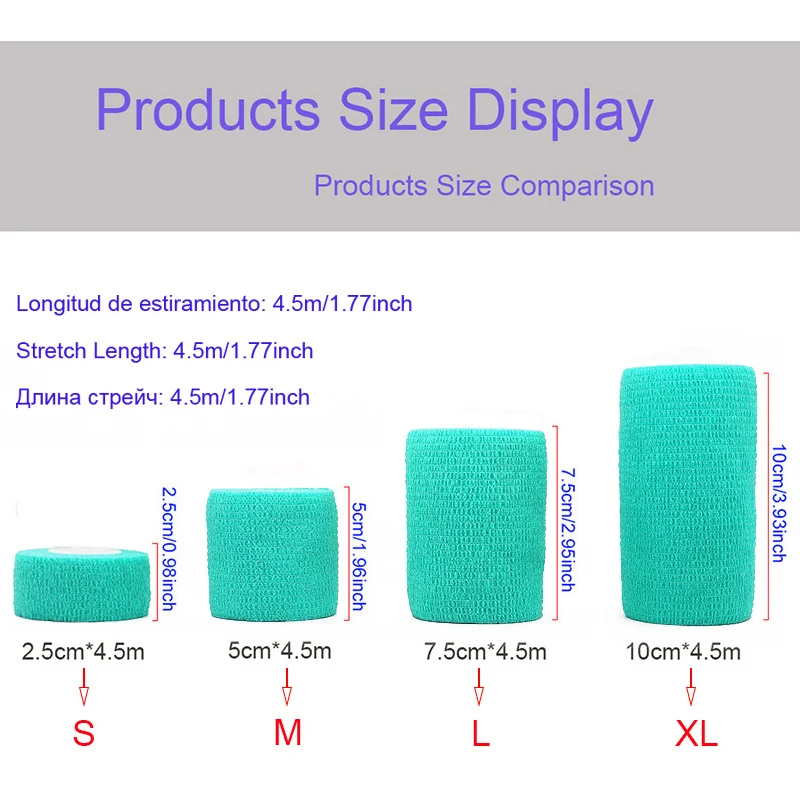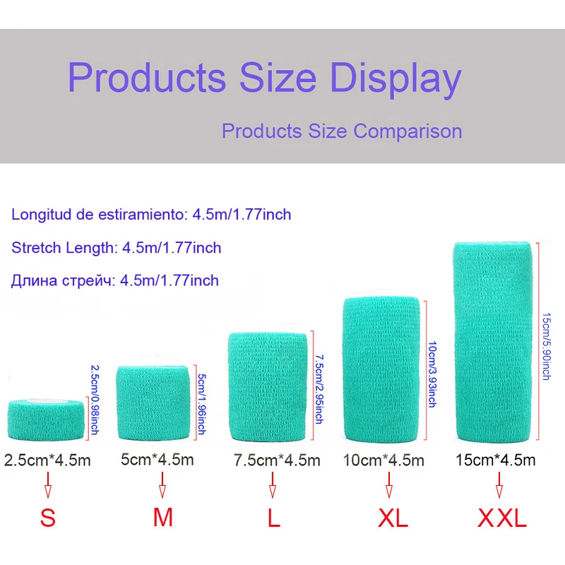 Эта повязка представляет собой не липкую ленту, которая прилипает сама по себе, для ее удержания не нужны булавки или другие ленты. Он идеально подходит для компрессии поврежденных мышц, так как не прилипает к коже или волосам.