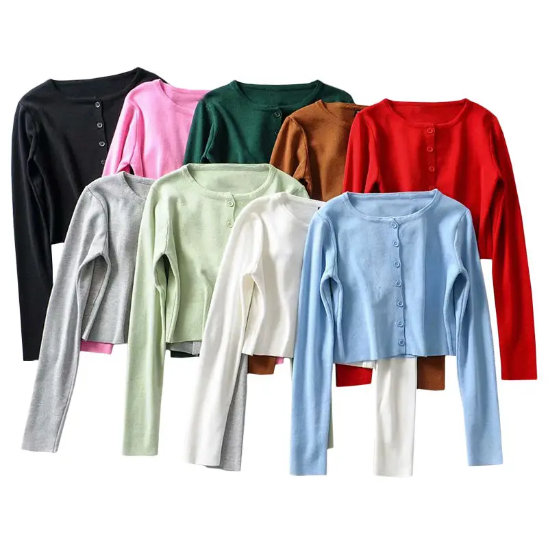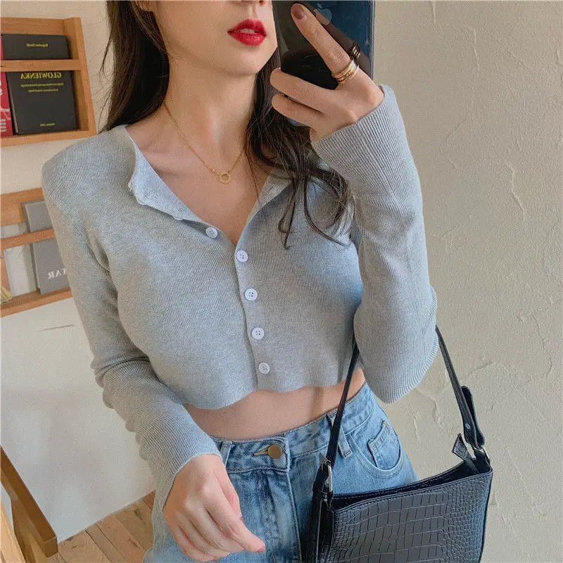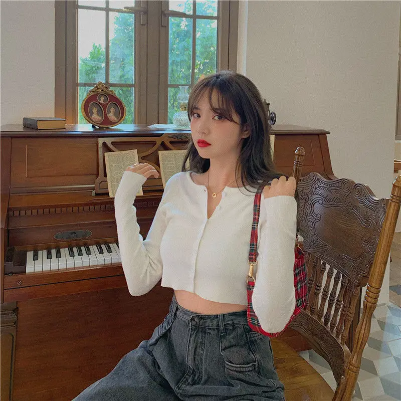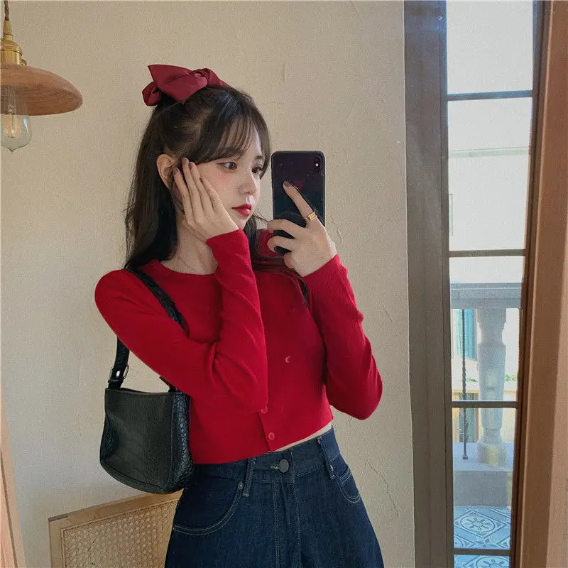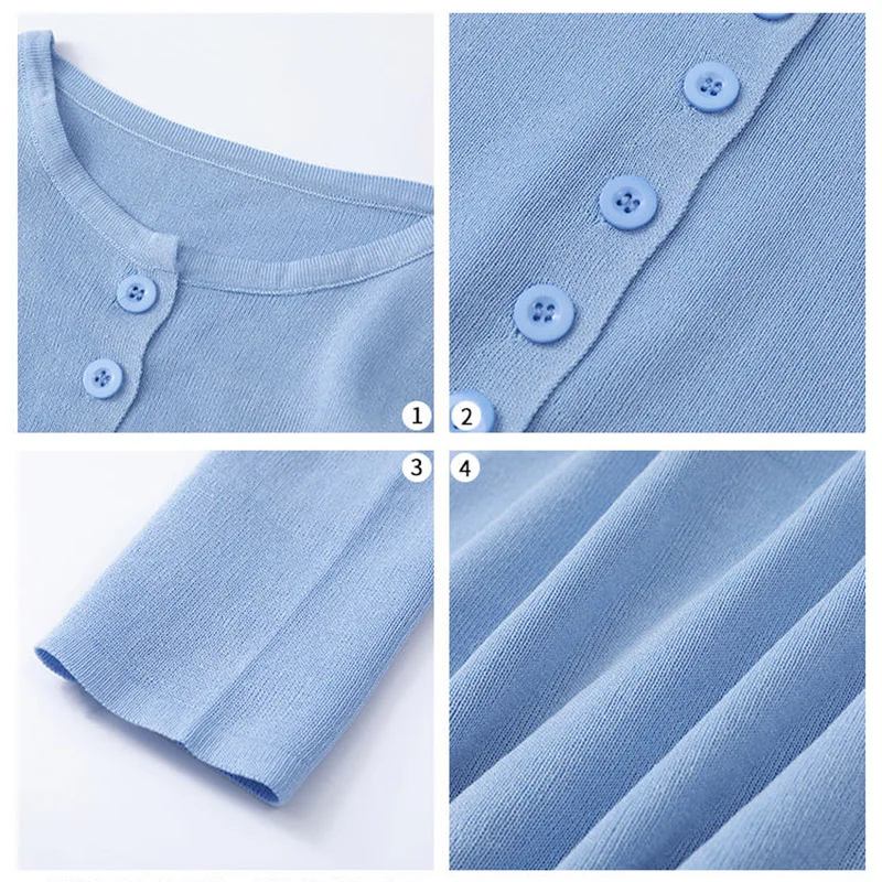 Короткий трикотажный кардиган в Корейском стиле, с круглым вырезом, на пуговицах, с коротким рукавом, для защиты от солнца
