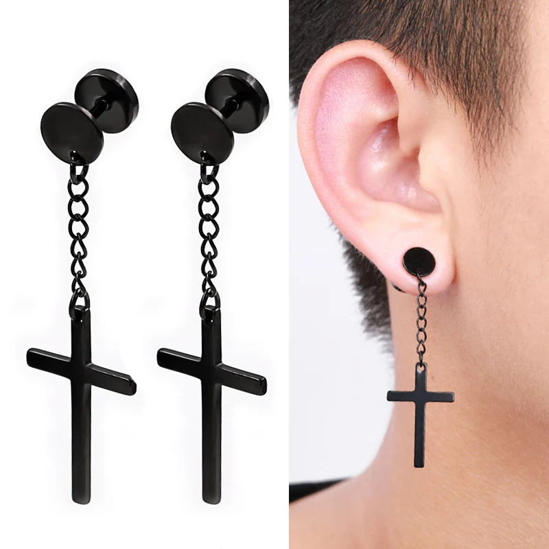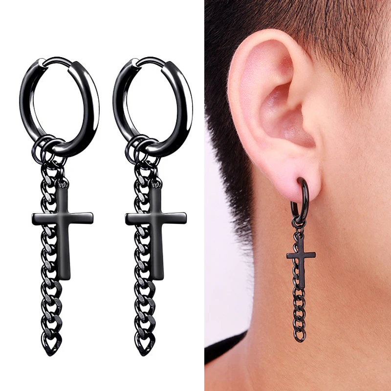 Серьги-Подвески мужскиеженские, из нержавеющей стали, с кисточками, круглая пряжка, 1 пара2 шт., ювелирные изделия в стиле готик-панк подарки