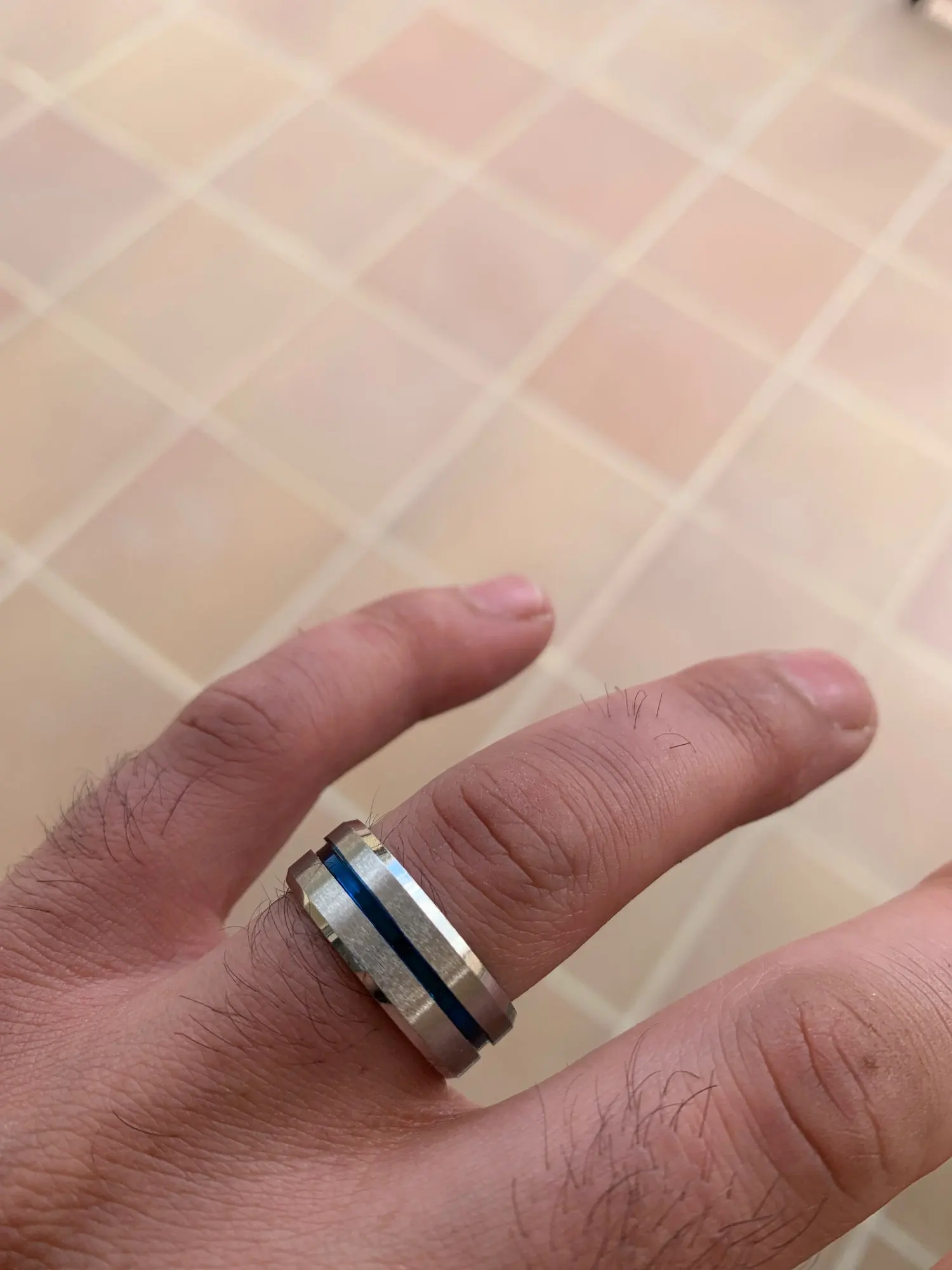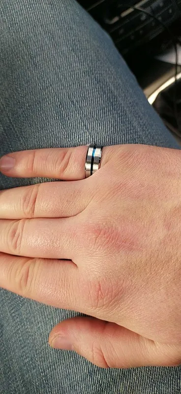 Отправка продавцом была долгая, 2 недели почти. Кольцо неплохое, но синяя часть нелепо закрашена. Много мазков за полосой.