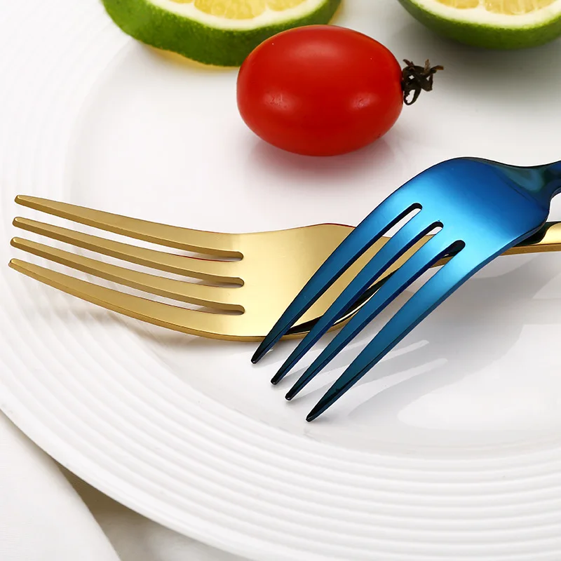 Набор столовых приборов из нержавеющей стали, набор разноцветных столовых приборов из 4 предметов, серебряное золото, столовая посуда