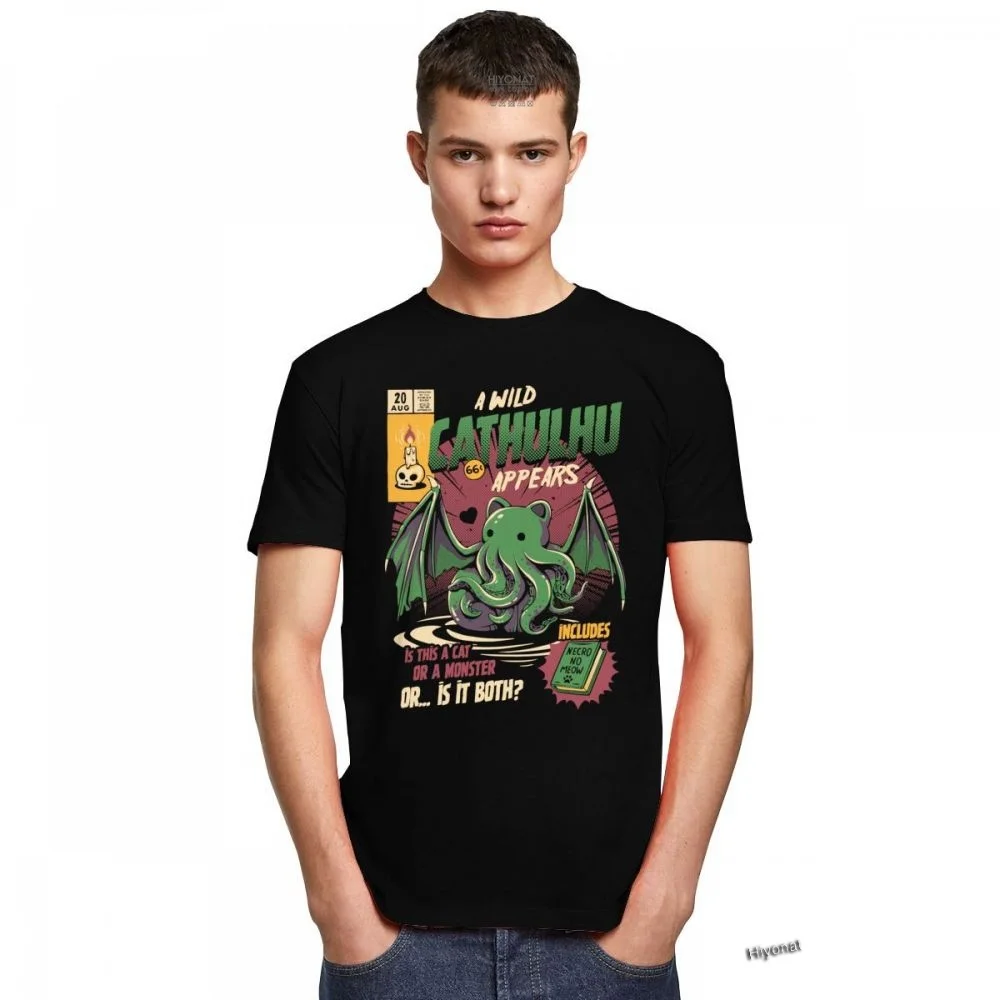 Классическая футболка ктулху с коротким рукавом, для отдыха, с изображением кота или футболка с монстром, футболка из фильма кайдзю, Лавкрафт, хлопковая футболка, идея для подарка