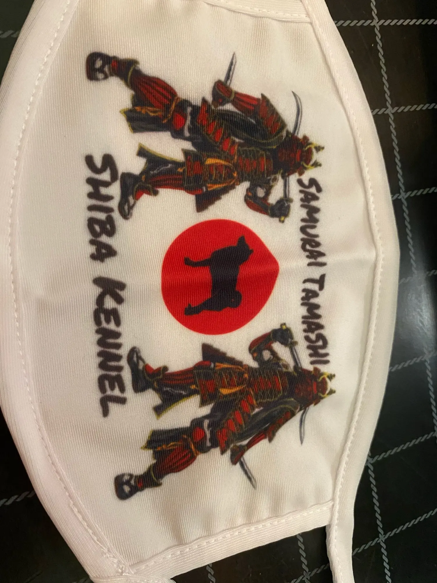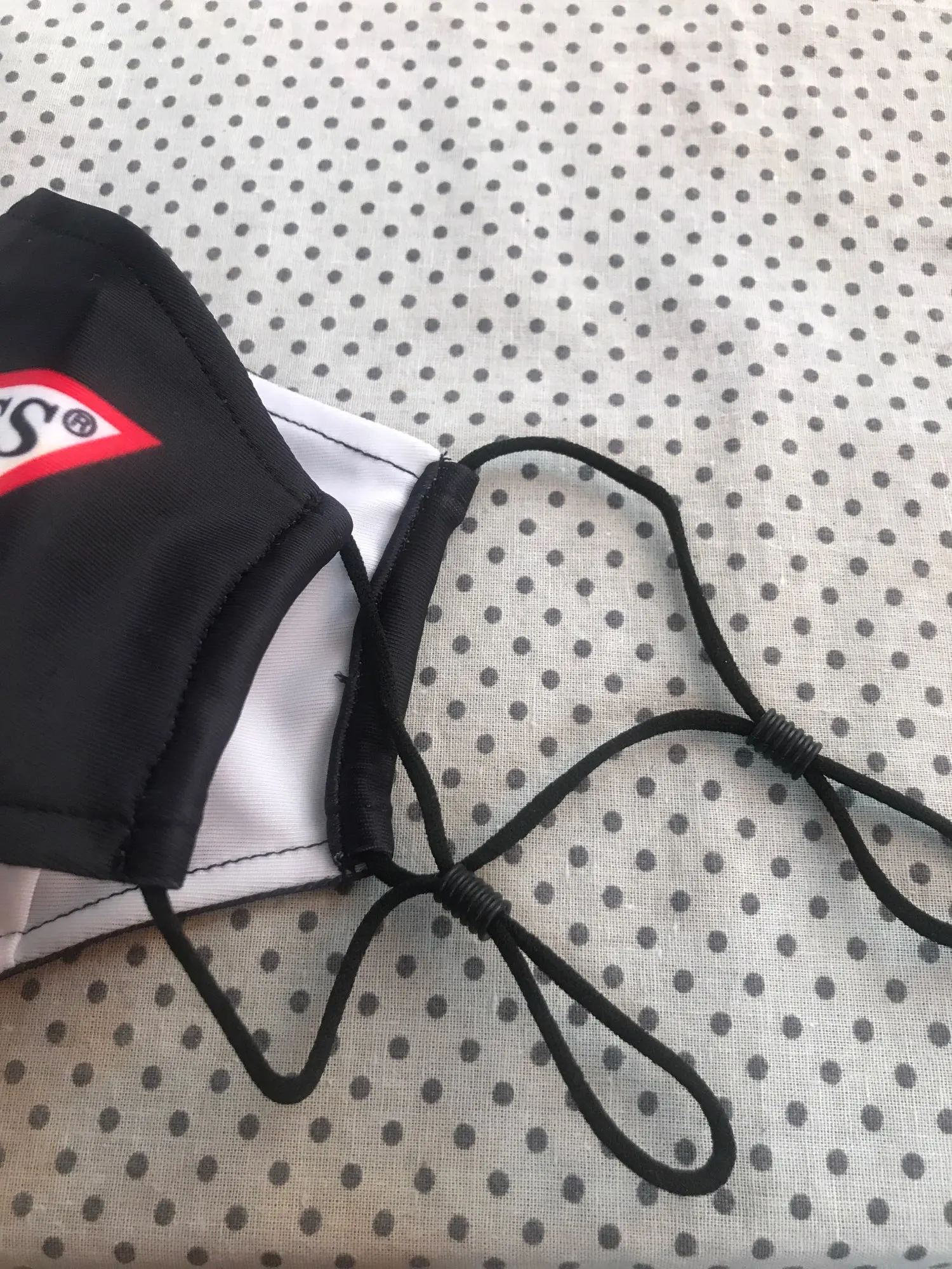 Принт может быть лучше, он белый, но выглядит серым, потому что маска черная сама по себе. Может использоваться другой принт. Также маска немного великовата.