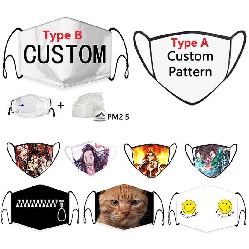 Маска для лица с 3D принтом на заказ, моющаяся маска для лица, маска для лица с защитой от пыли, тканевая защитная маска, многоразовая дышащая маска