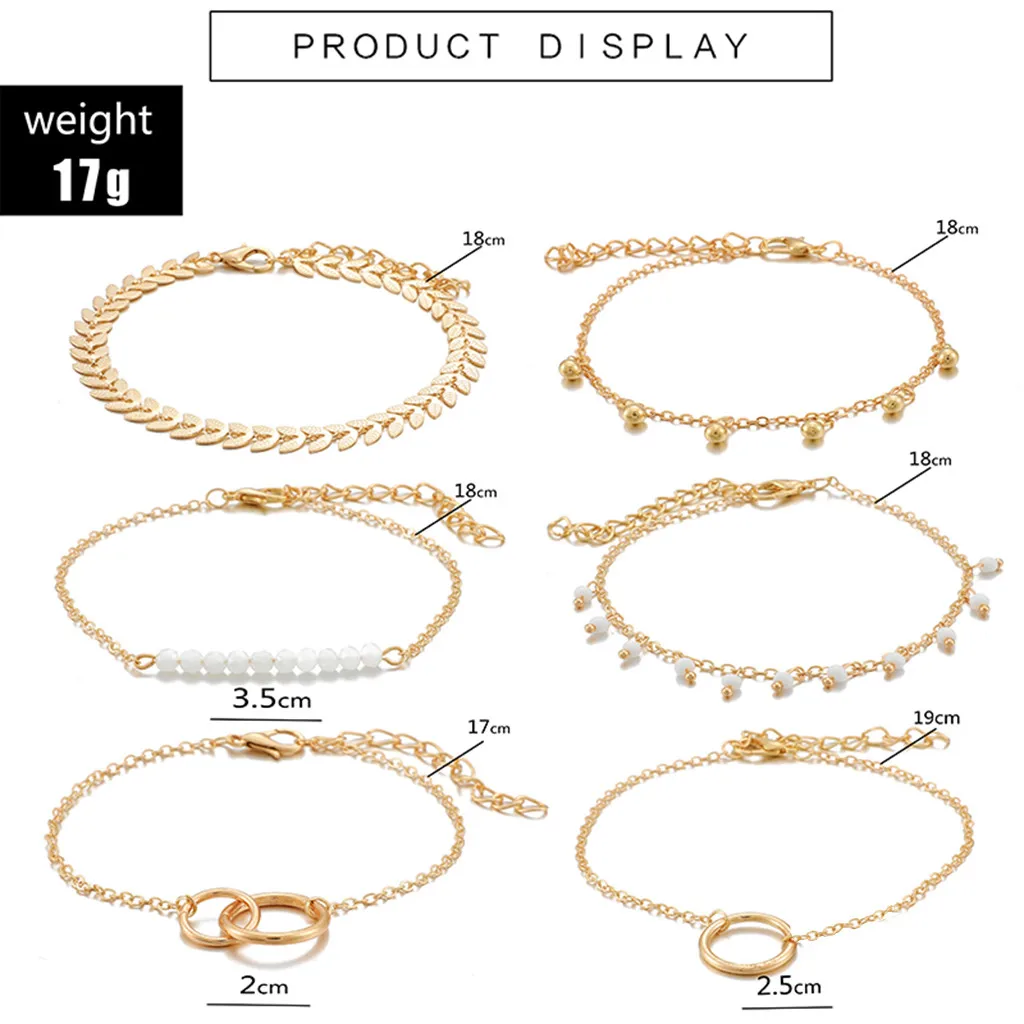 Комплект из 6 предметов для женщин, Браслет-манжета из нержавеющей стали с изящной цепочкой-Открытый браслет для запястья