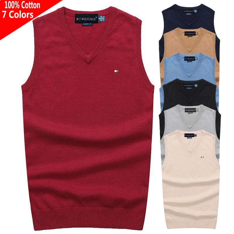 100% из хлопка; Сезон весна-осень; Новый пуловер с вырезом в виде буквы V мужской вязаный жилет Свитера Детская повседневная одежда, платье-майка без рукавов модные тонкие мужские топы M-3XL