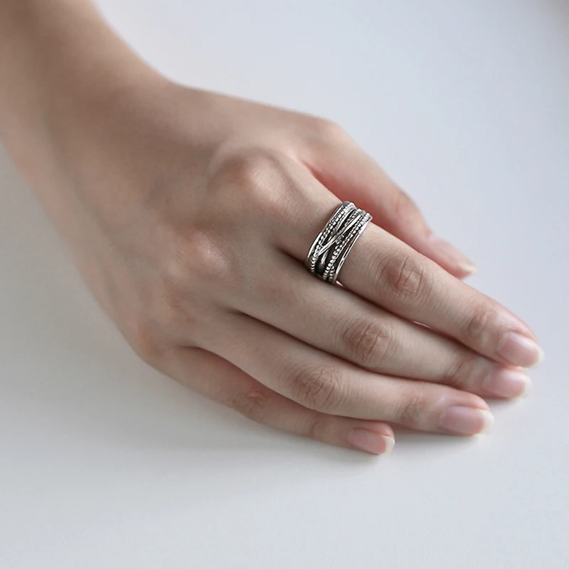 Кольцо женское из чистого серебра 925 пробы, многослойное, винтажно...