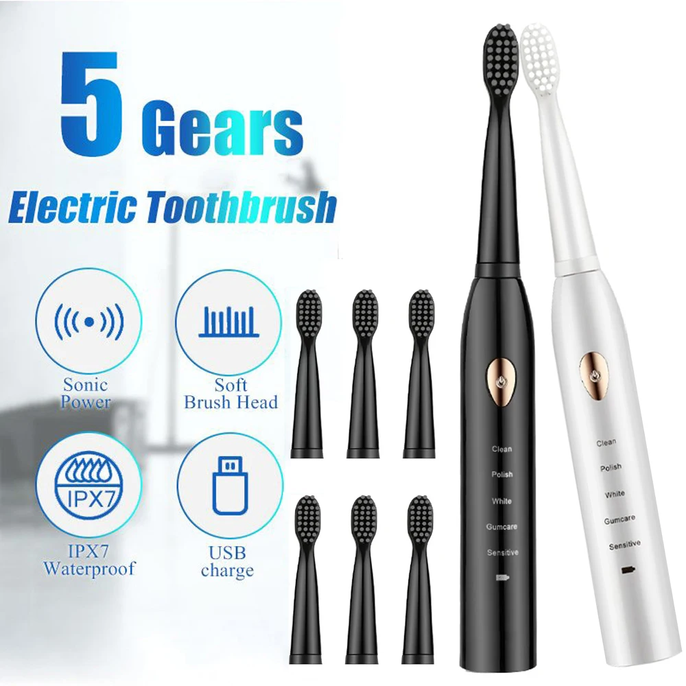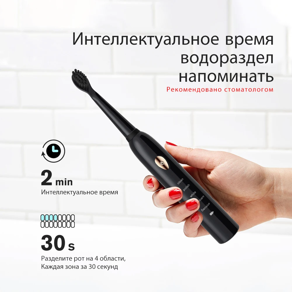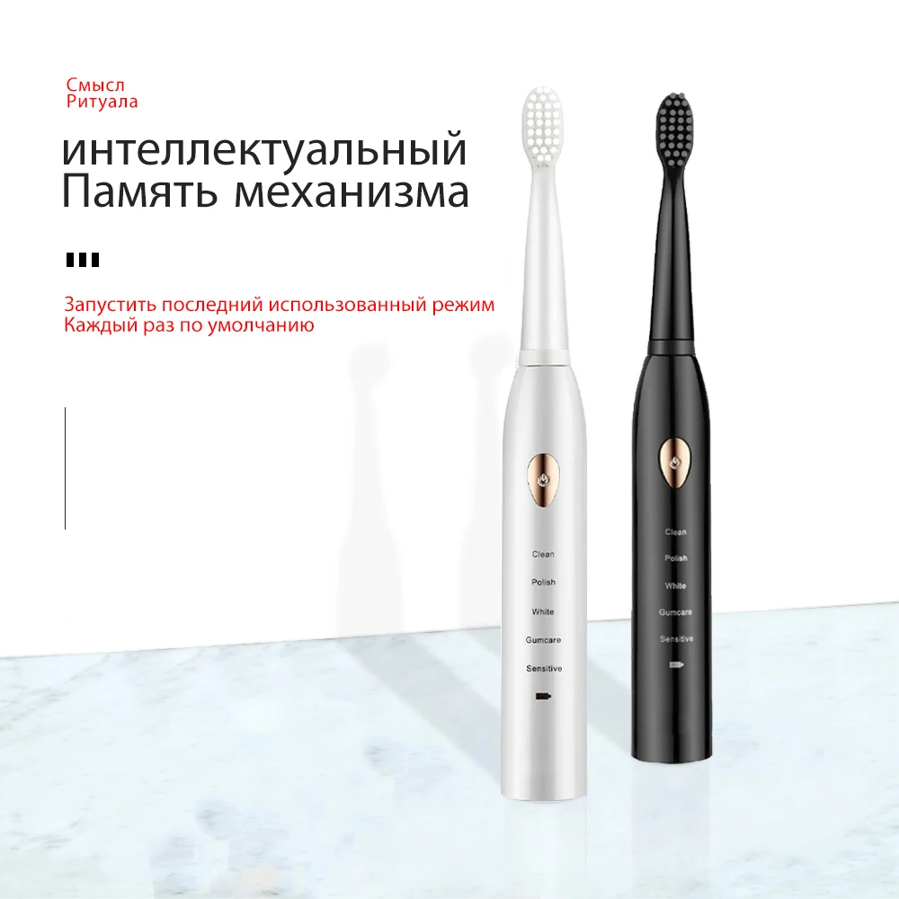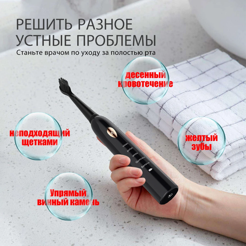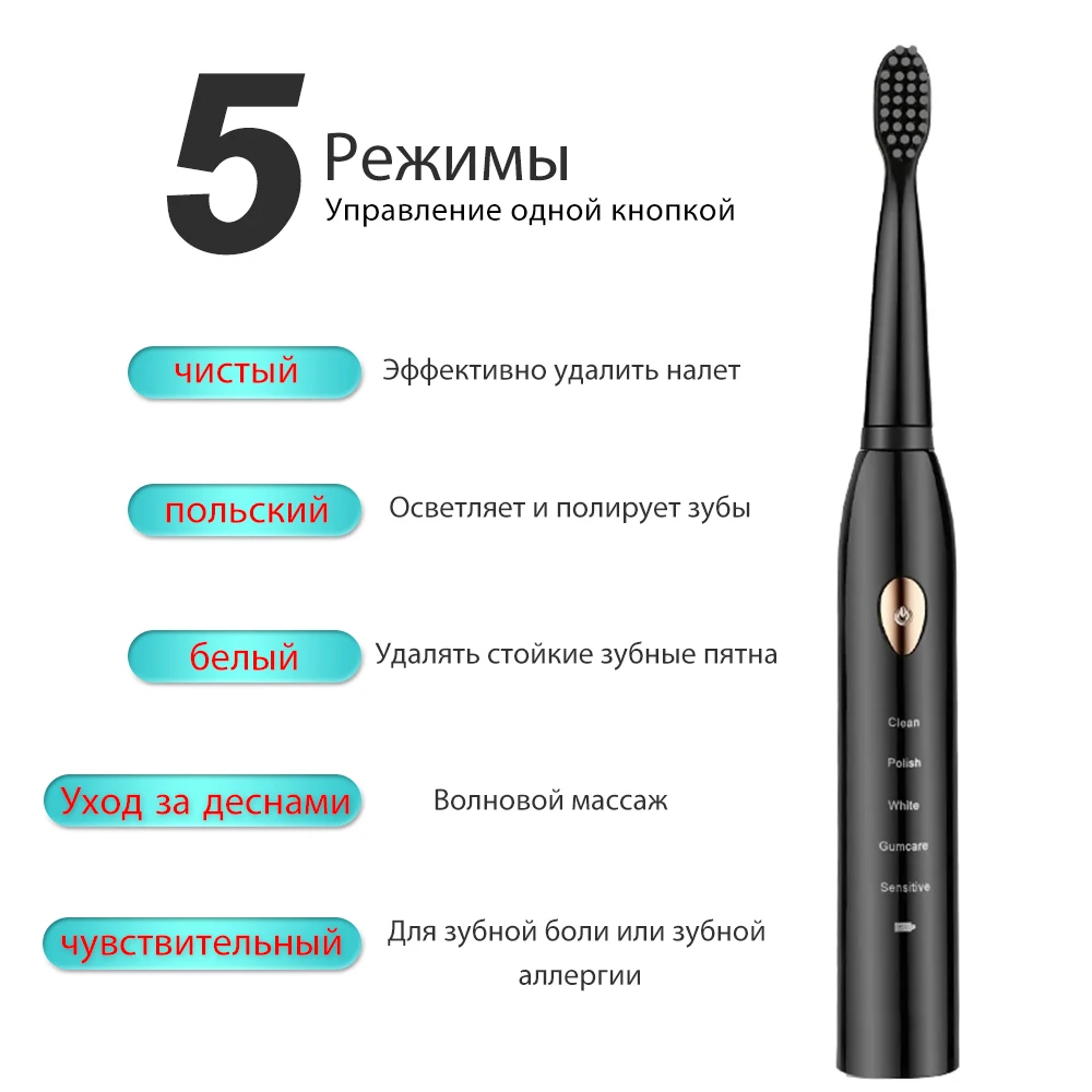 Щетка Зубная ультразвуковая аккумуляторная с зарядкой от USB и функцией отбеливания
