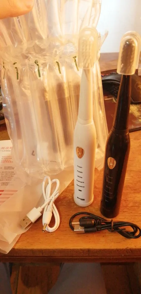щетки приехали в Подмосковье относительно быстро, упакованы были в контейнер под щётку, и вакуумный пакет, брали набором из двух щеток + насадки. каждая насадка в индивидуальном пакетике запаяна. сама насадка с очень мягкой щетиной, я бы хотела пожесче ворсинки, не думаю что такой насадкой будет считаться налёт. щётка заряжена, все режимы действительно разные, отключается сама - удобно. принудительное отключение - нажать и удерживать клавишу включения. когда работает - не шумит, по крайней мере для моих ушей не шумит :)))) мужу понравилась, зубы гладкие после чистки, в руке держится нормально, но по самому виду на картинке она покрасивее, сойдёт за 600р с кучей допнасадок. в комплекте шнур без блока зарядного