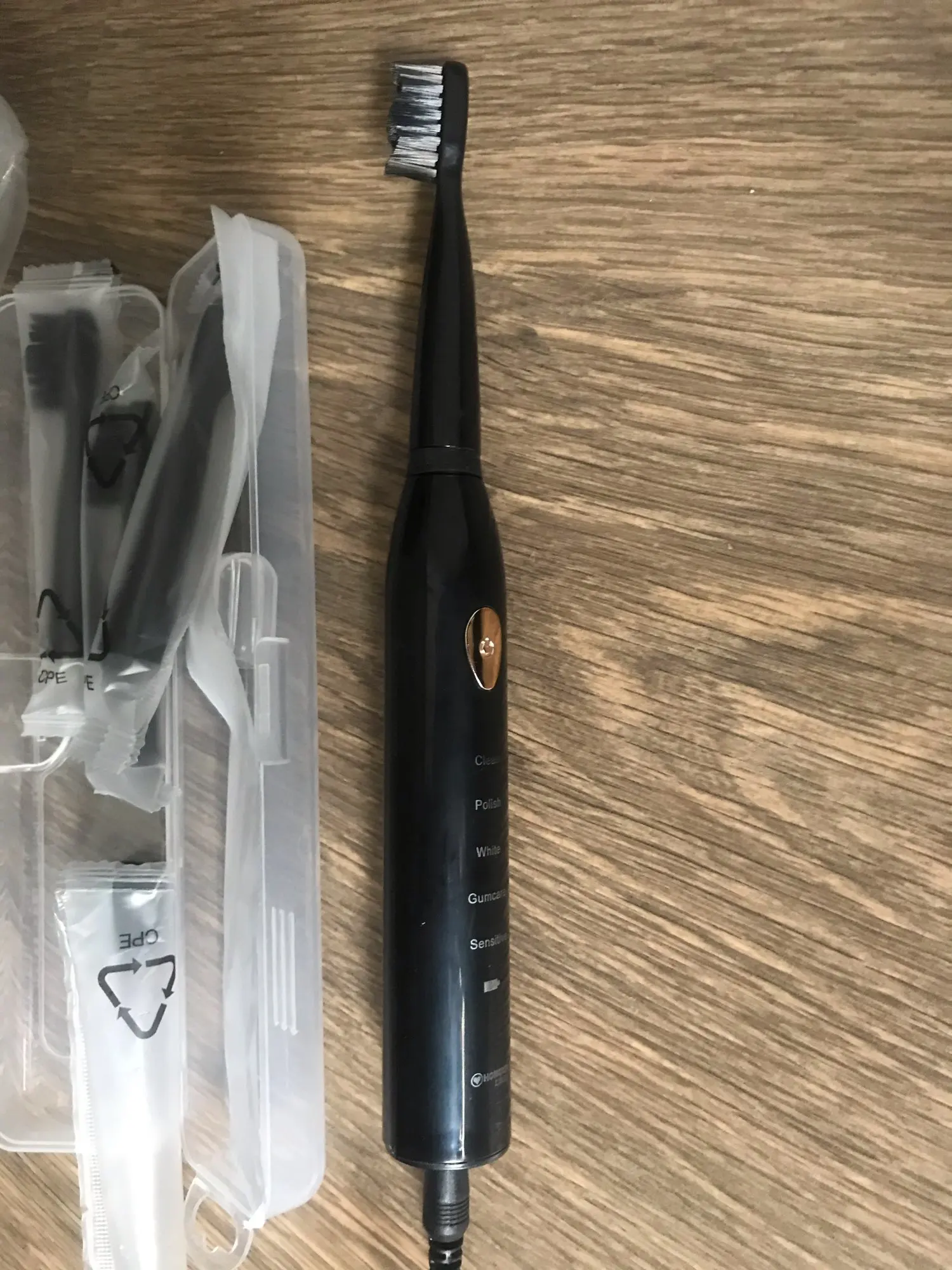 Заказ пришёл очень быстро, за неделю. Щётка хорошая, но придется привыкать, работает иначе, чем обычные электрические. Зубы чистить хорошо.