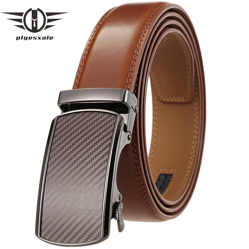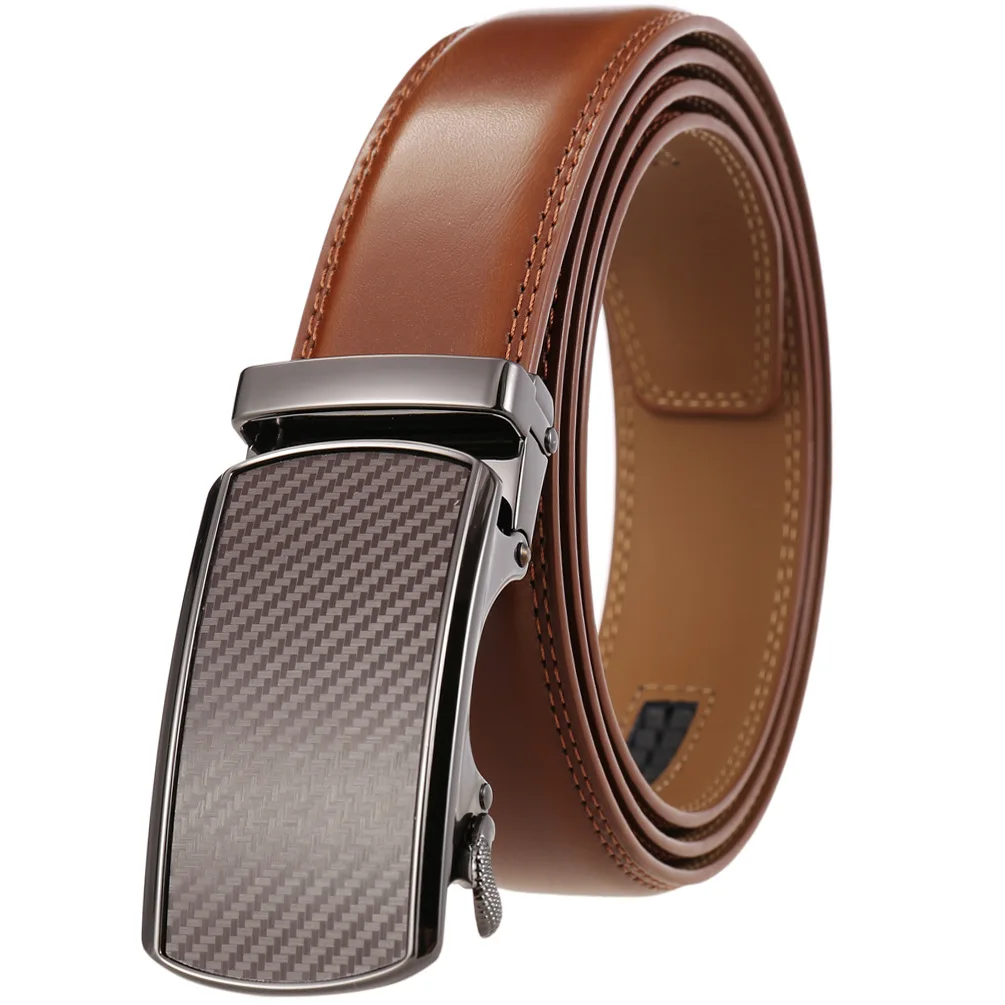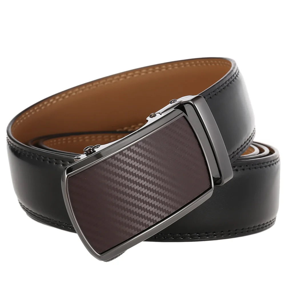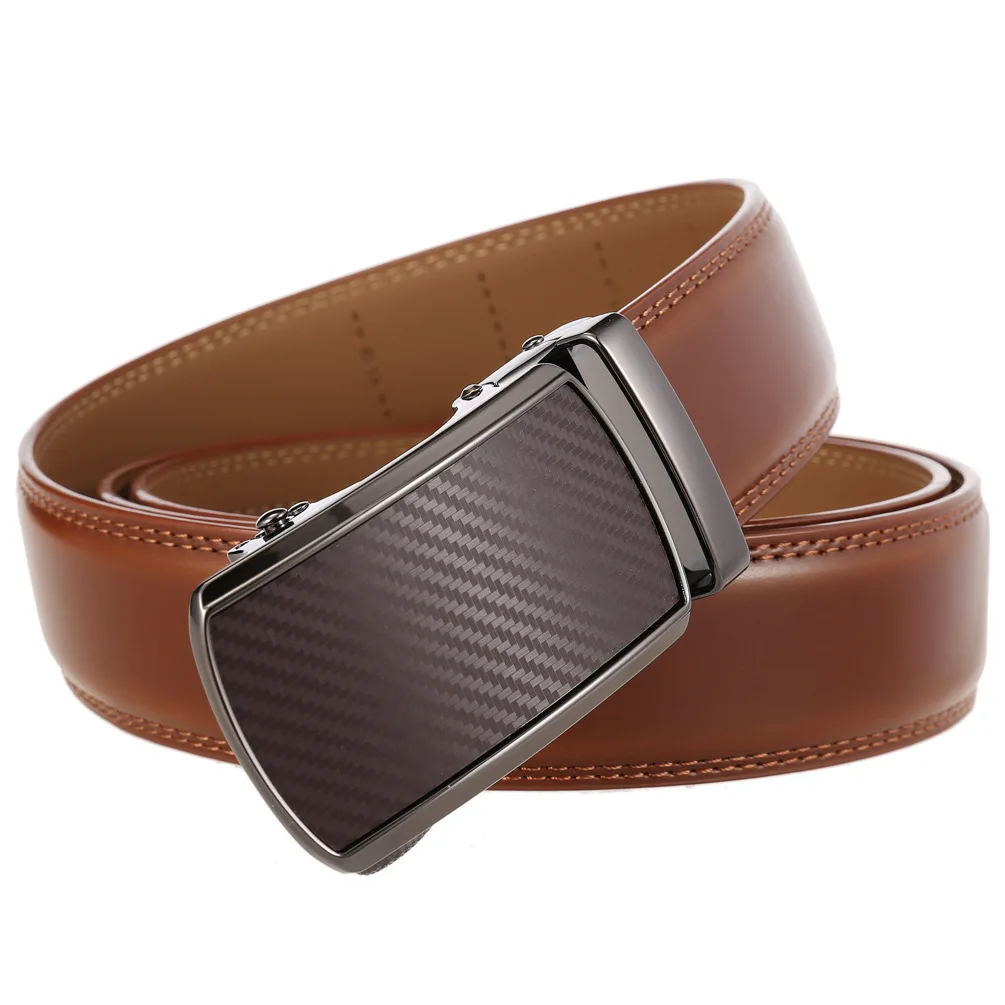 Ремень B304 мужской из натуральной воловьей кожи, Роскошный деловой пояс с автоматической пряжкой из сплава, черный темно-коричневый