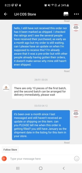 Общался с продавцом, но все еще не получил товар, несмотря на то, что я пообещал отправить его. Очень разочарован, что мой товар не был отправлен