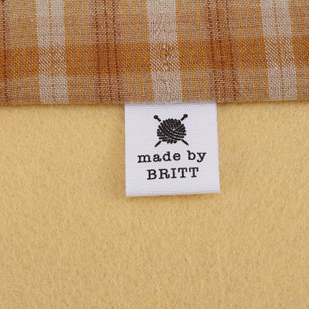 Швейные этикетки, персонализированный бренд, Пользовательский логотип, хлопковые бирки, вязание крючком, белая ткань, шерстяная петля, 20 мм x 60 мм (MD5169)