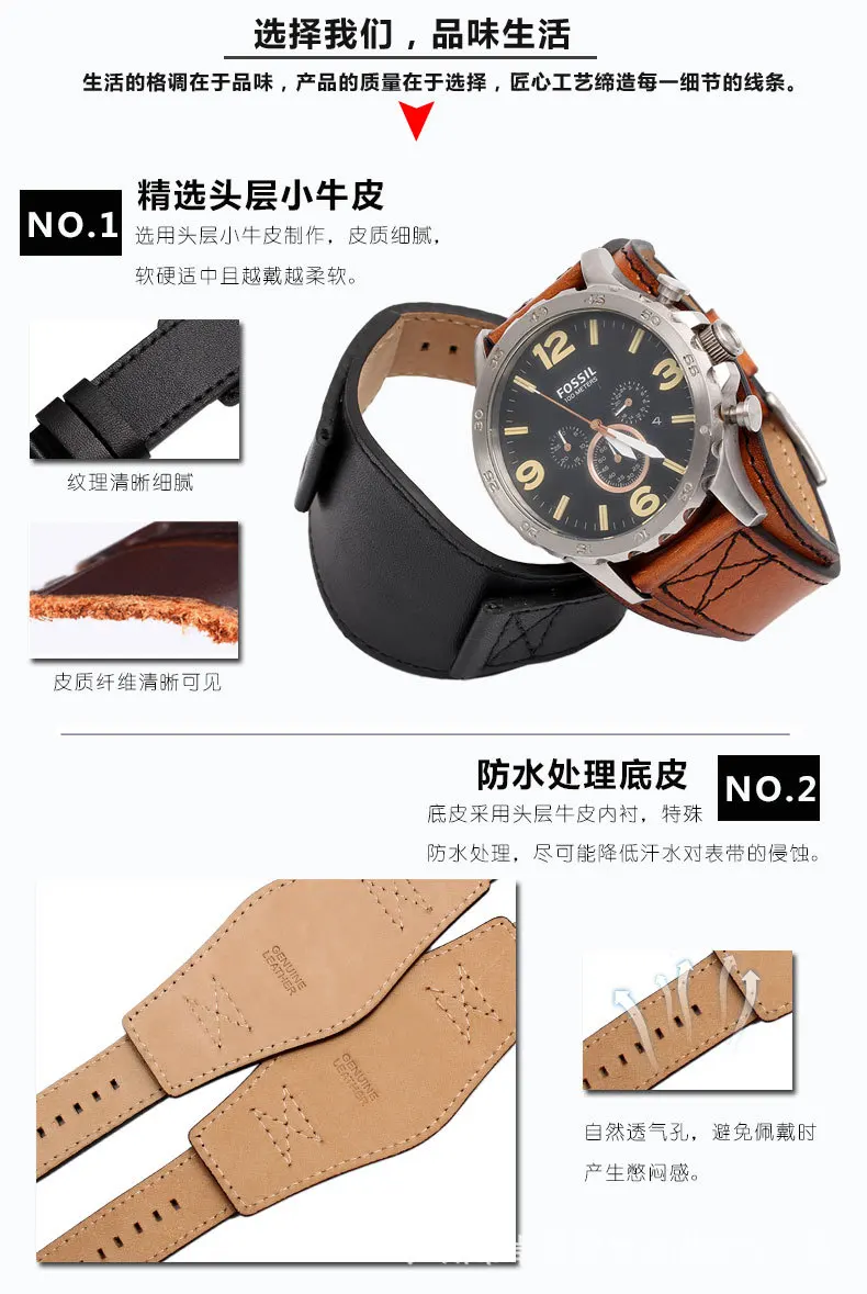 Ремешок из натуральной кожи для Fossil FS5088 FS4656 BQ1718 FS4616 ...