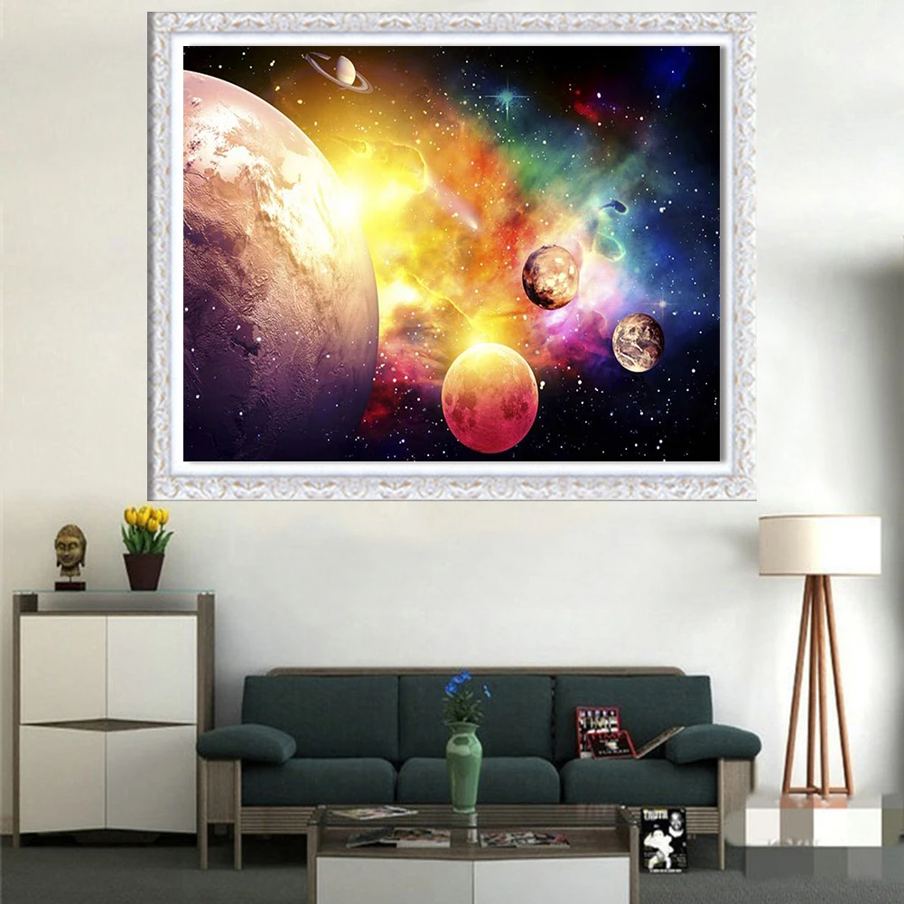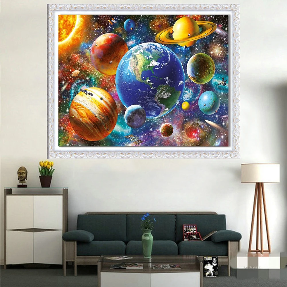 Алмазная мозаика 5d с изображением звездного неба, пейзажа, космической планеты, для самостоятельной вышивки крестиком, украшение для дома, вышивка круглые алмазы