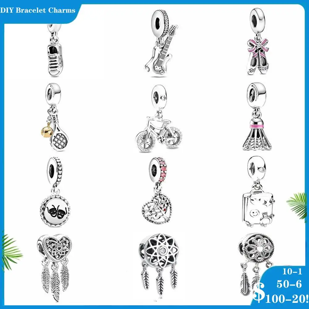 Танцевальная обувь из серебра 925 пробы ракетка подвеска Ловец снов сделай сам Изящные бусины подходят для оригинального браслета Pandora женские ювелирные изделия