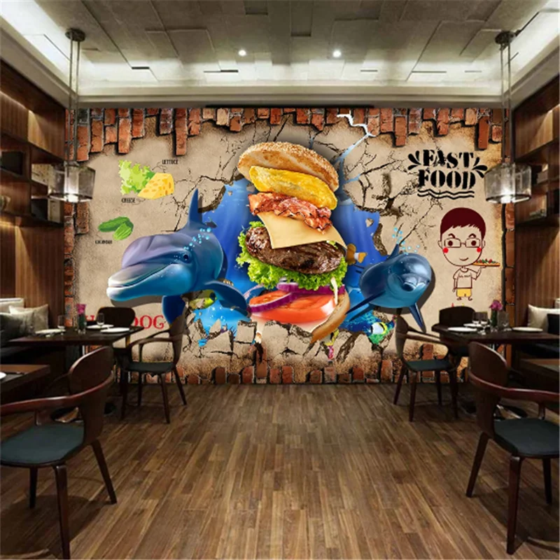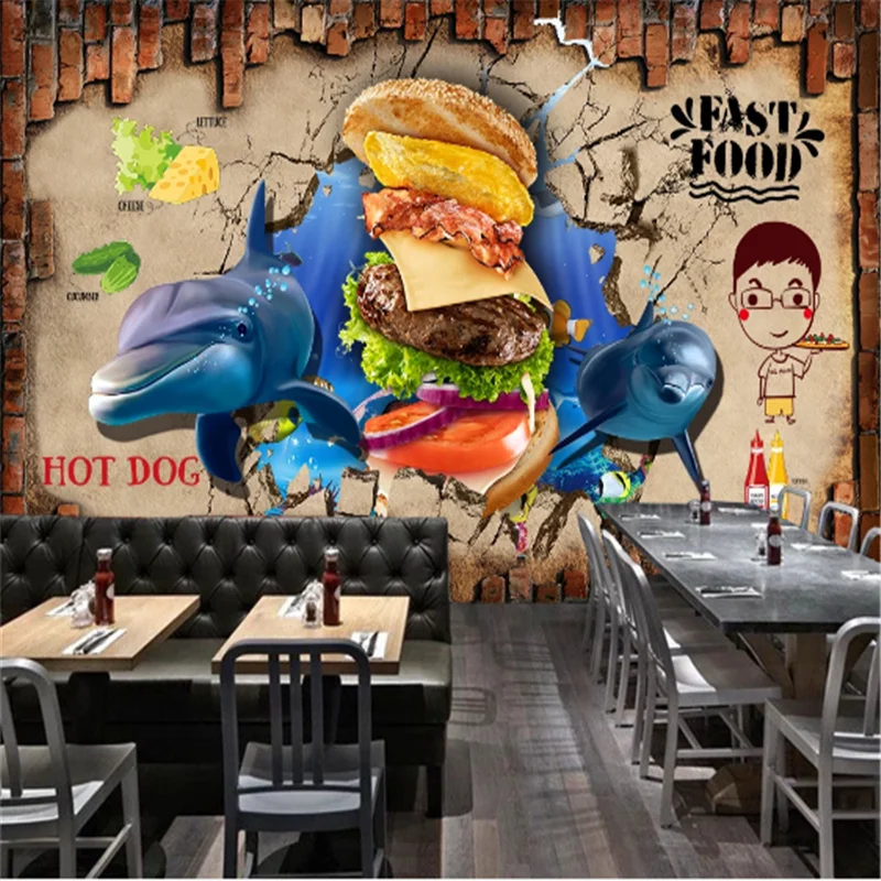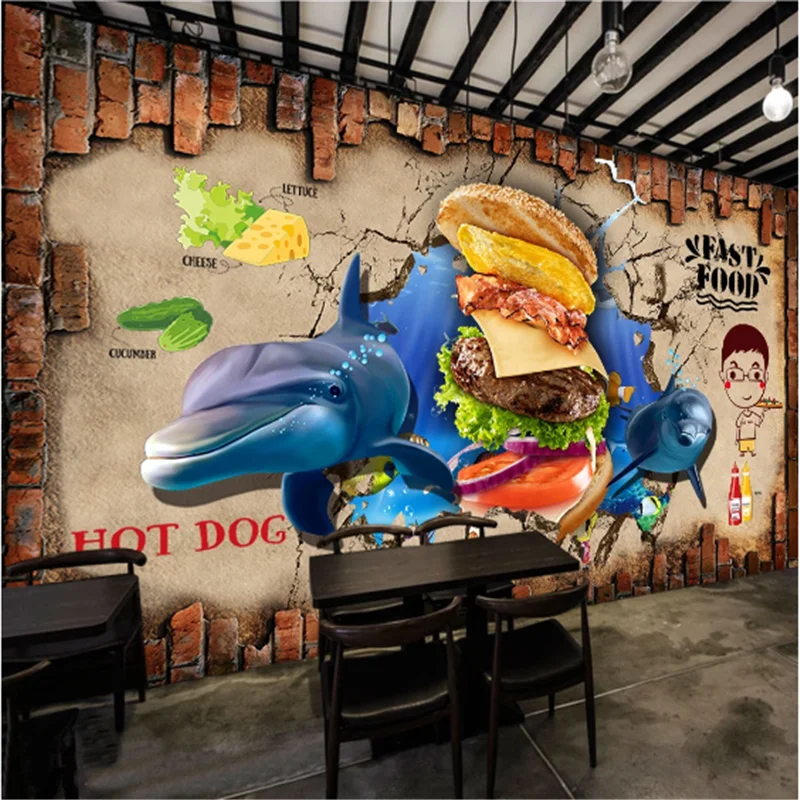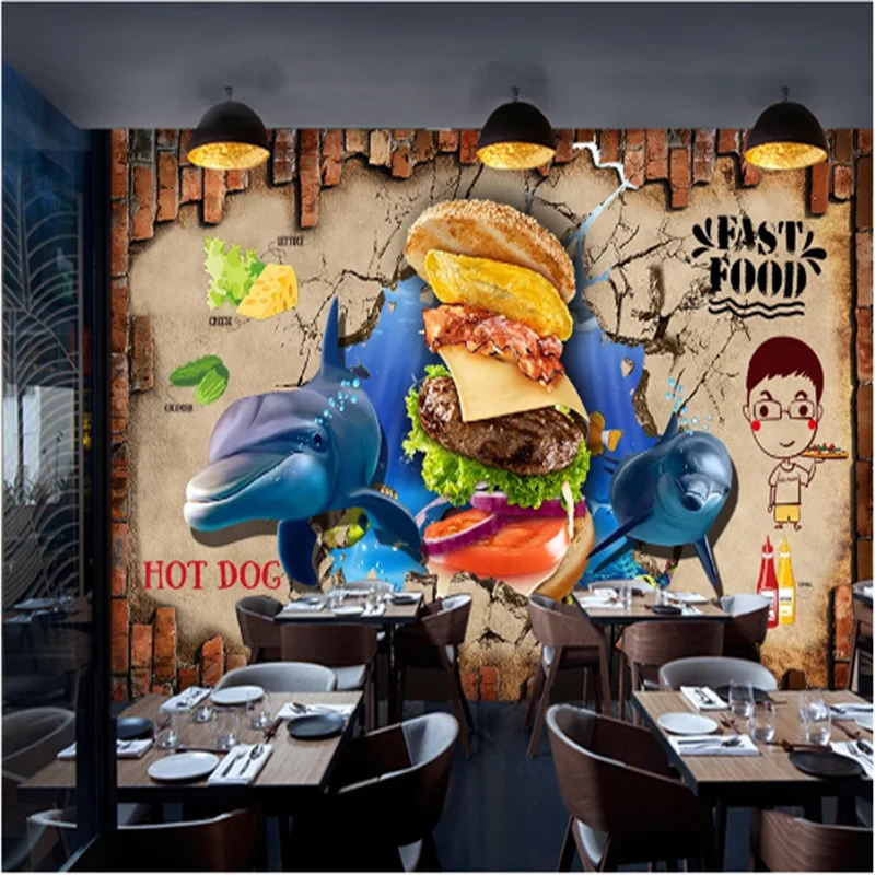 Обои для ресторана с изображением гамбургеров, фаст-фуда, 3D обои с...