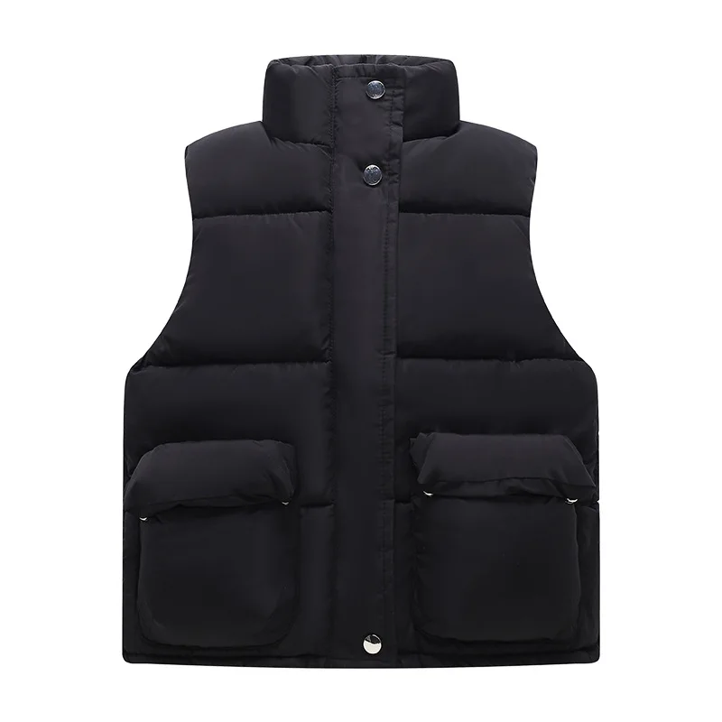 2022 жилет-пуховик для девочек, детская куртка, теплая верхняя одежда, однотонный жилет, пальто с принтом для осени и зимы, одежда