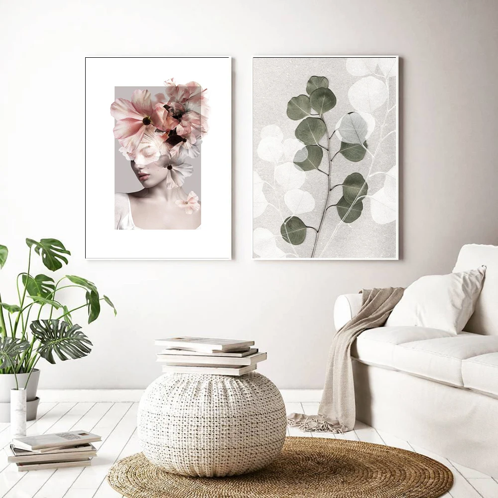 Эвкалиптовый плакат с зелеными льняными листьями, Декор, картина, современные женственные цветы, настенные художественные картины на холсте для гостиной, дома