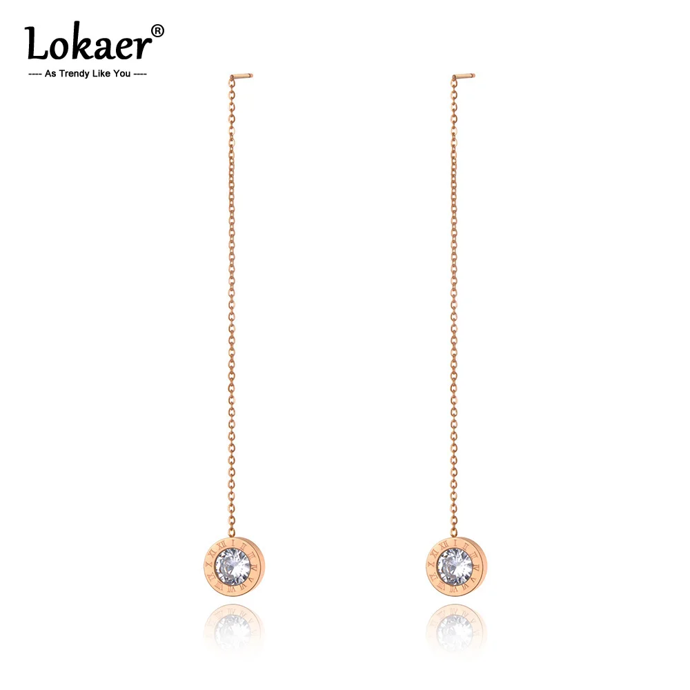 Женские серьги-кисточки Lokaer, из нержавеющей титановой стали с фианитами и римскими цифрами, висящие серьги в богемном стиле, E20213