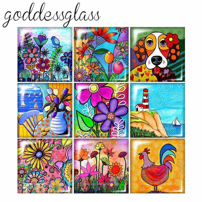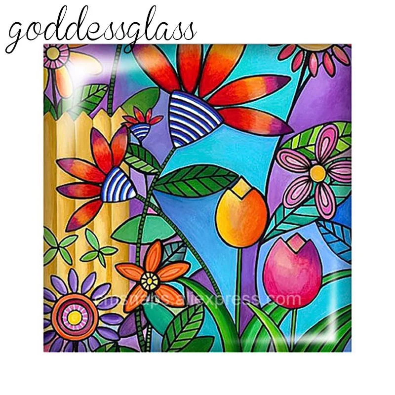 Стиль масляноц живописи красочные цветы доска для собак от 10 шт 12 мм20 мм25 мм30 мм кабошоны разрисованные изделия из стекла демо с плоской задней частью, украшения своими руками