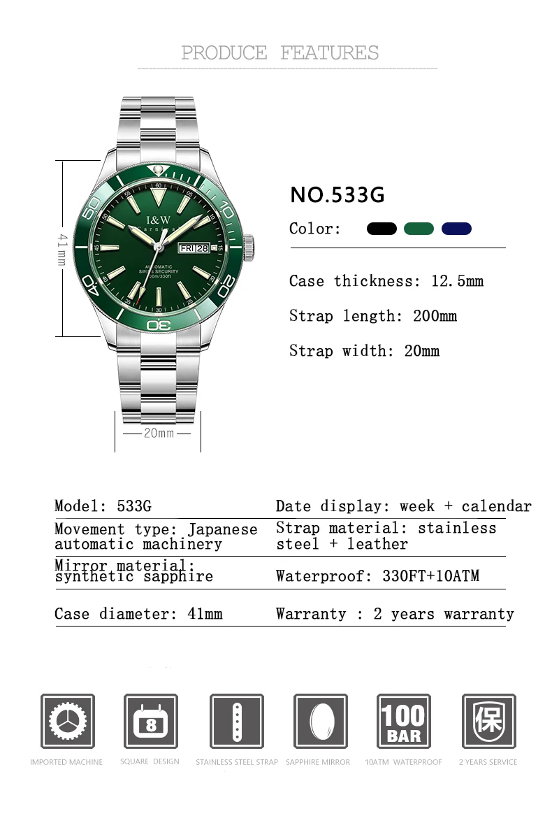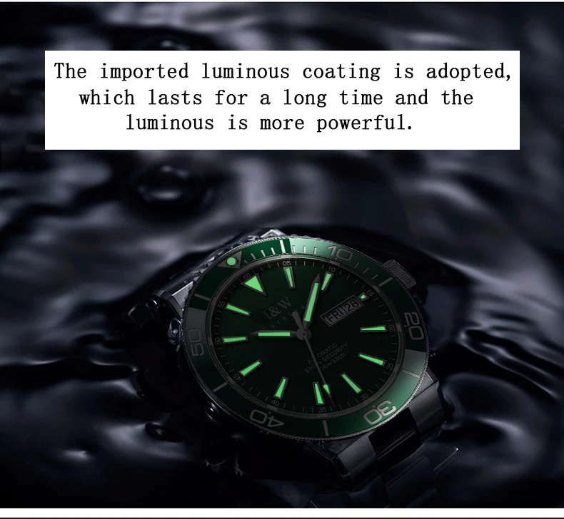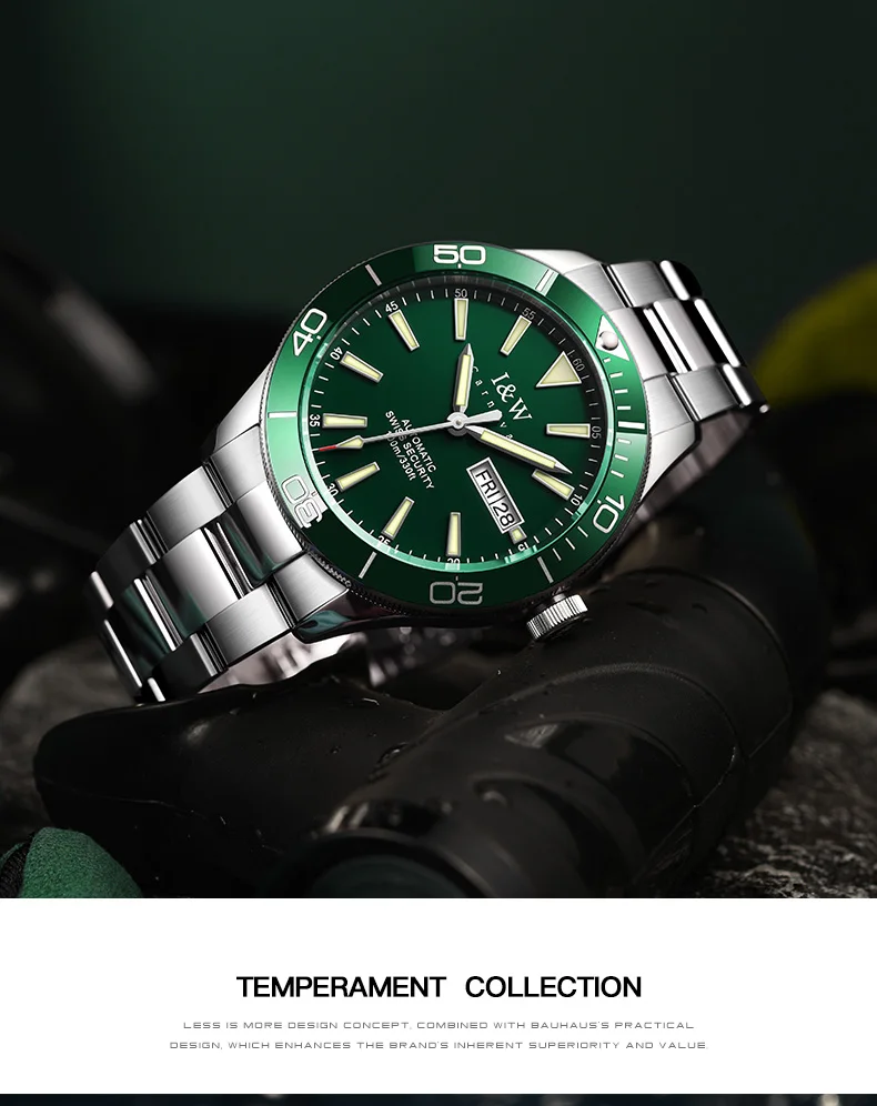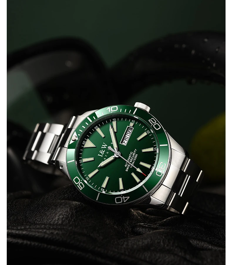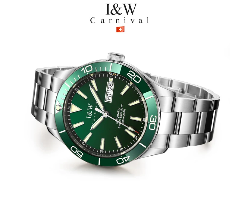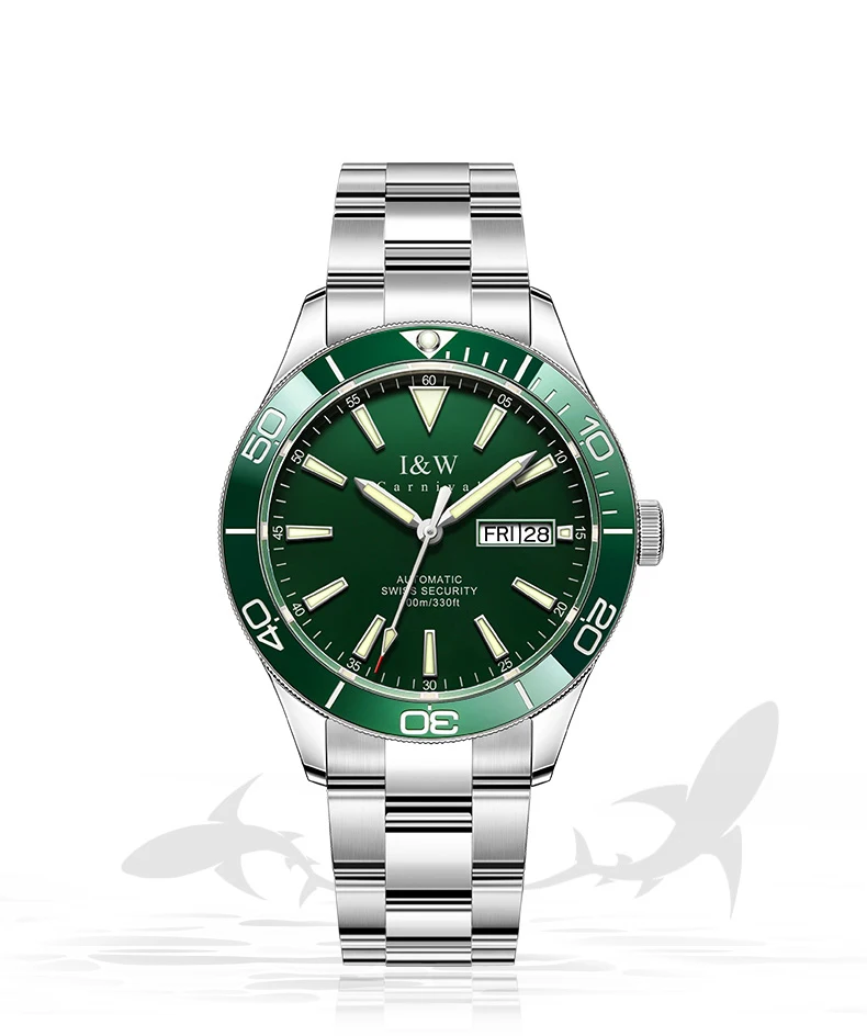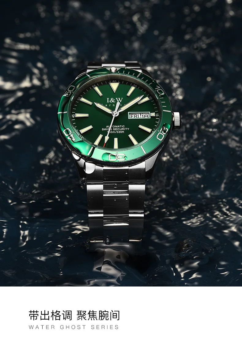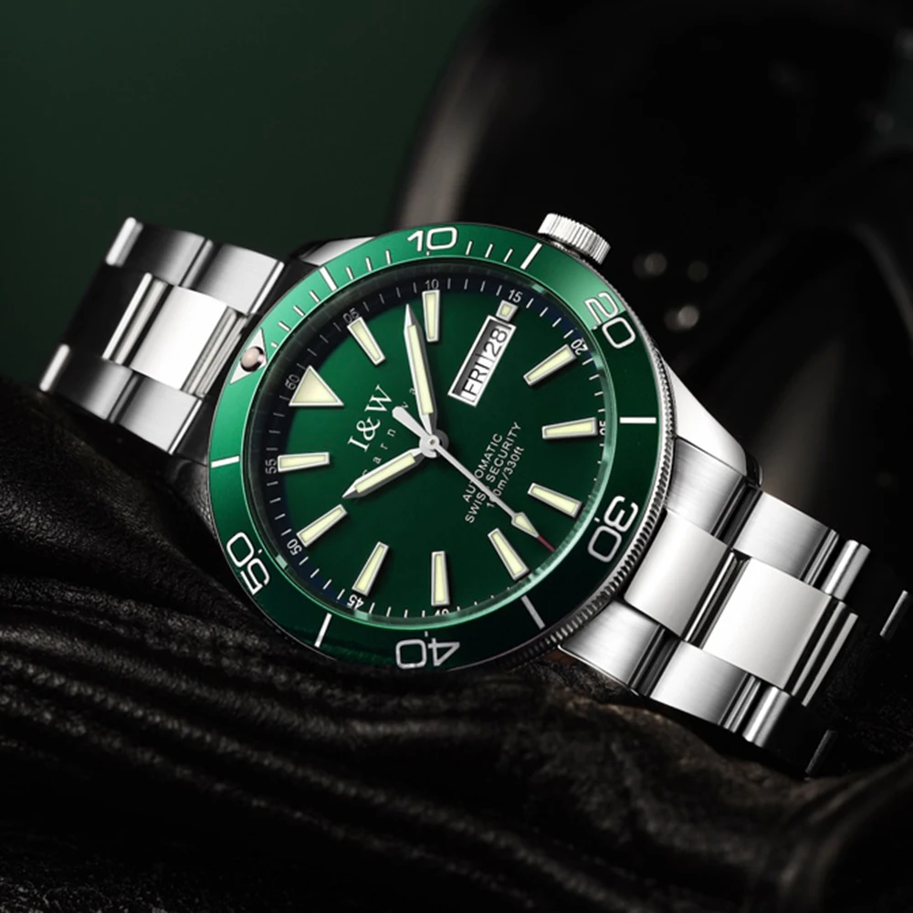 Швейцарский роскошный бренд I W автоматические механические мужские часы 100 м водонепроницаемые спортивные часы для Акваланга зеленые мужские часы