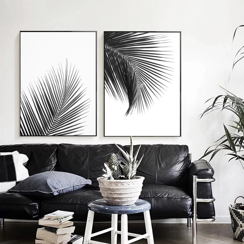 Плакаты на холсте с листьями пальмы, черные, белые, серые, Минимали...
