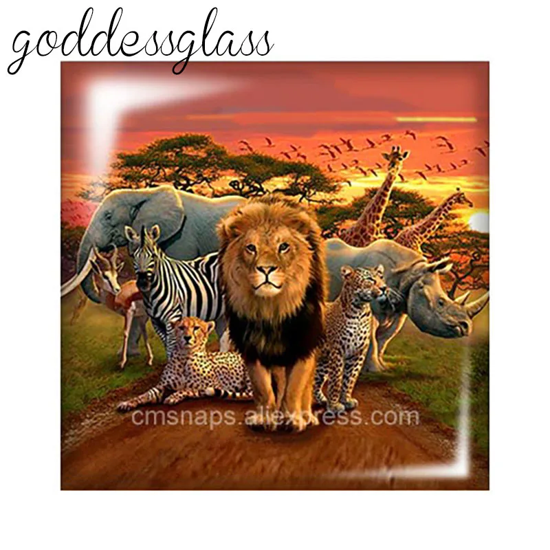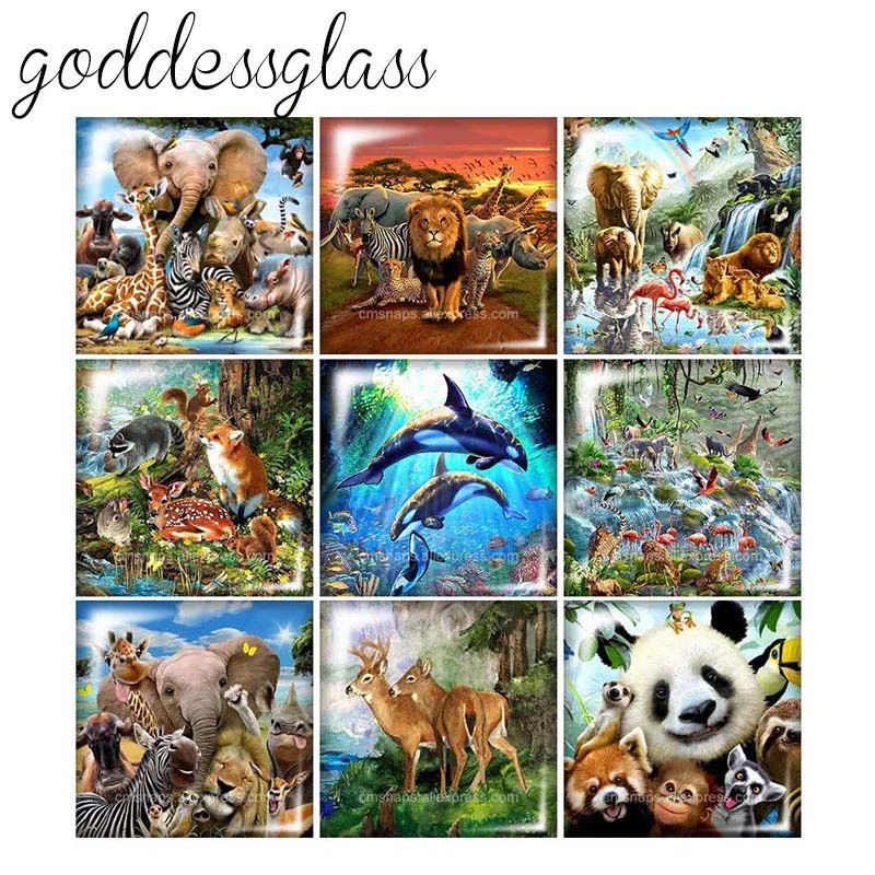 Животные панда, Тигр Лев лиса слон квадрат 10 шт. 12 мм20 мм25 мм30 мм кабошоны разрисованные изделия из стекла демо с плоской задней частью, украшения своими руками