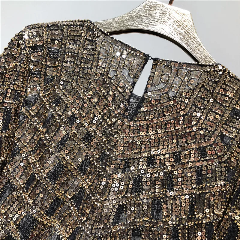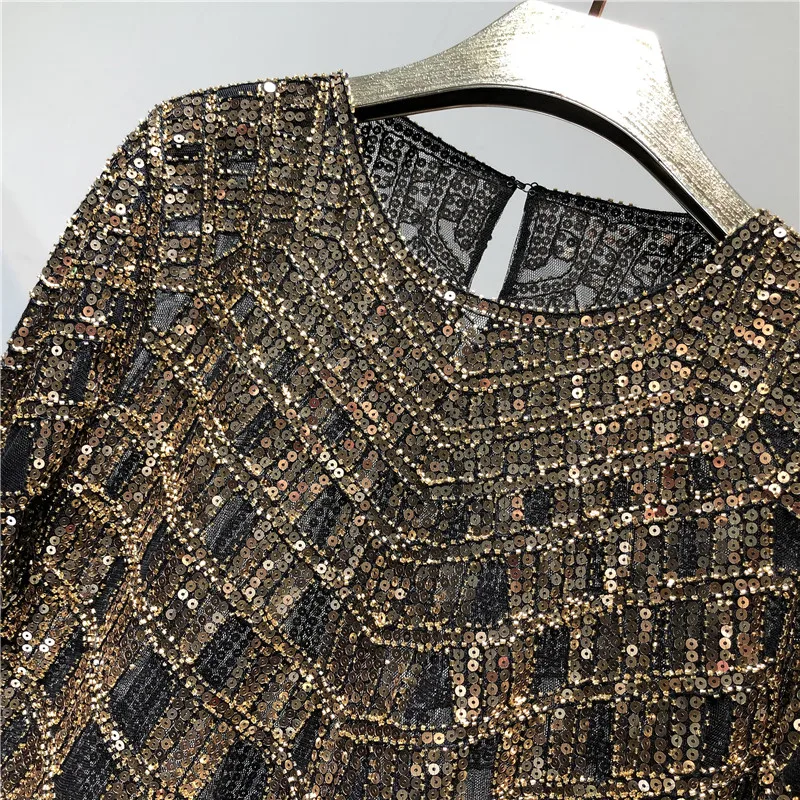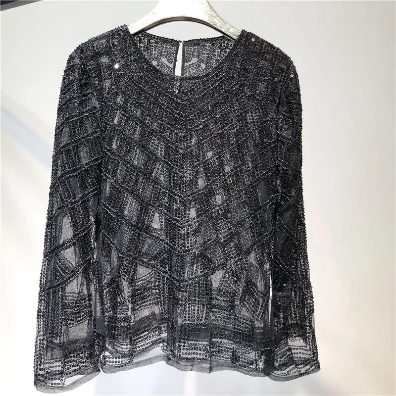 Модная женская рубашка с блестками и бисером, женские роскошные сексуальные пуловеры с длинным рукавом и круглым вырезом, блестящие Топы
