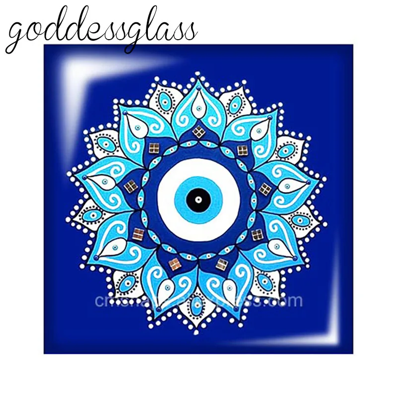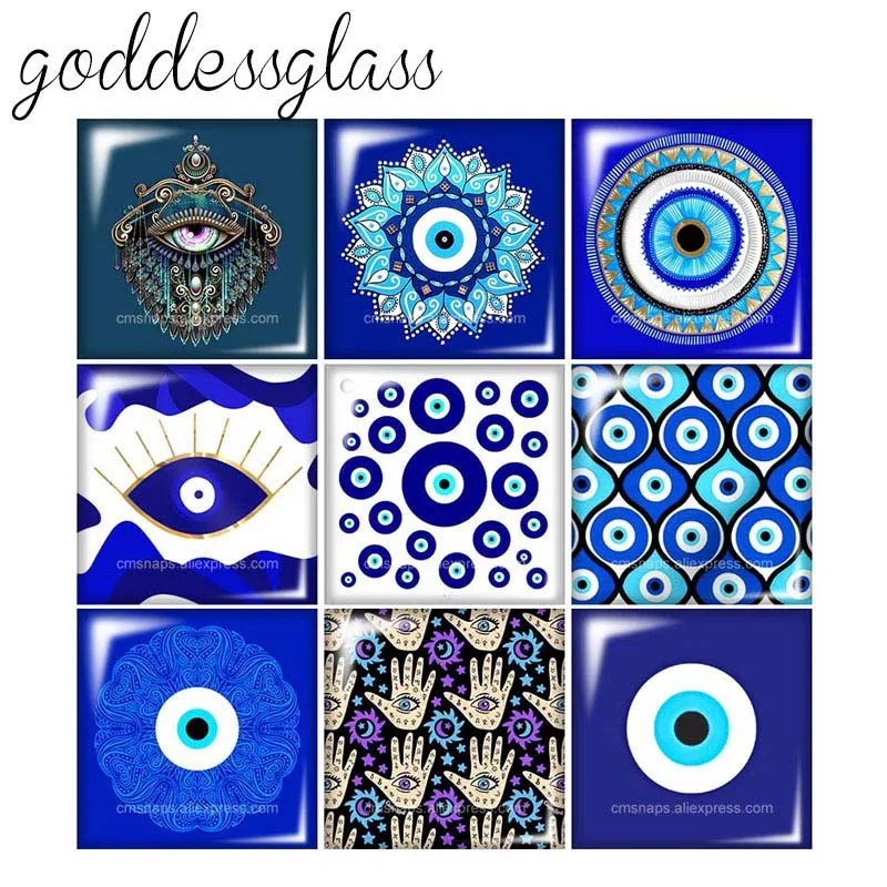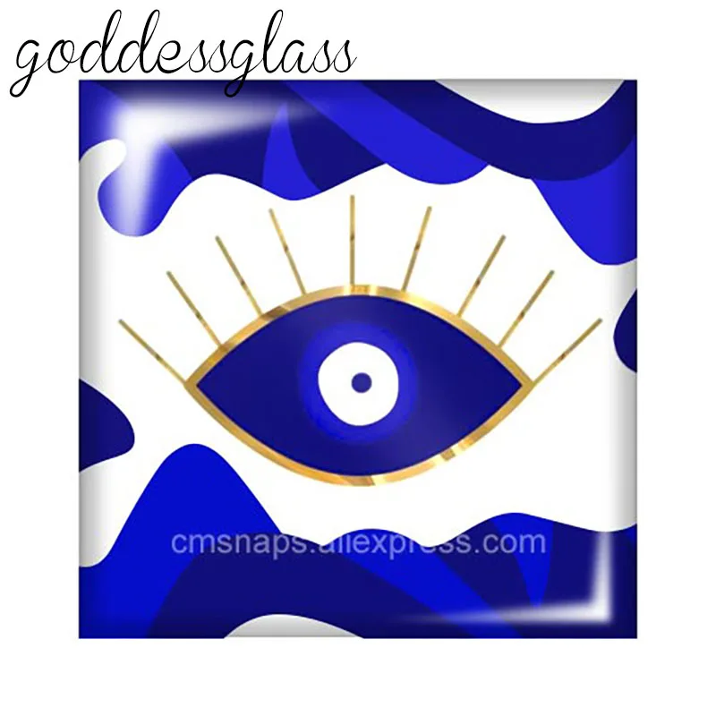 Новые квадратные синие религиозные узоры сглаза 10 шт. 12 мм20 мм25 мм30 мм фото стеклянный кабошон демонстрационная фурнитура с плоской задней стороной