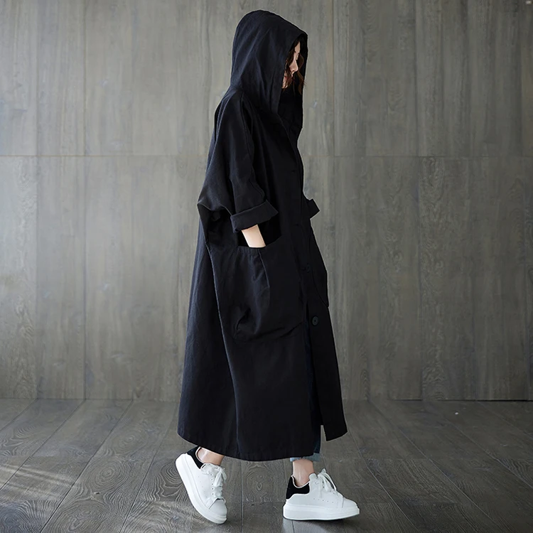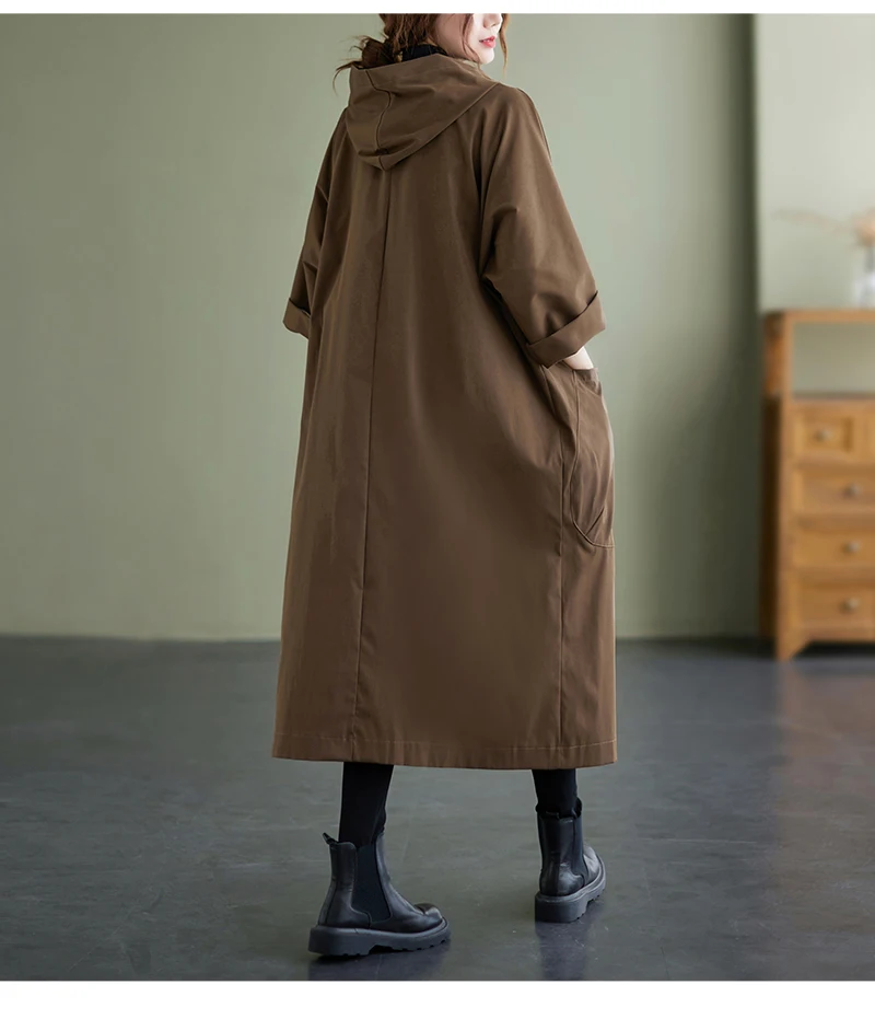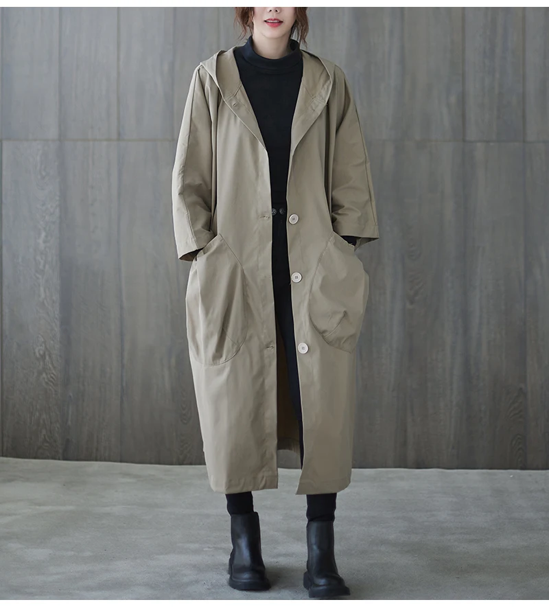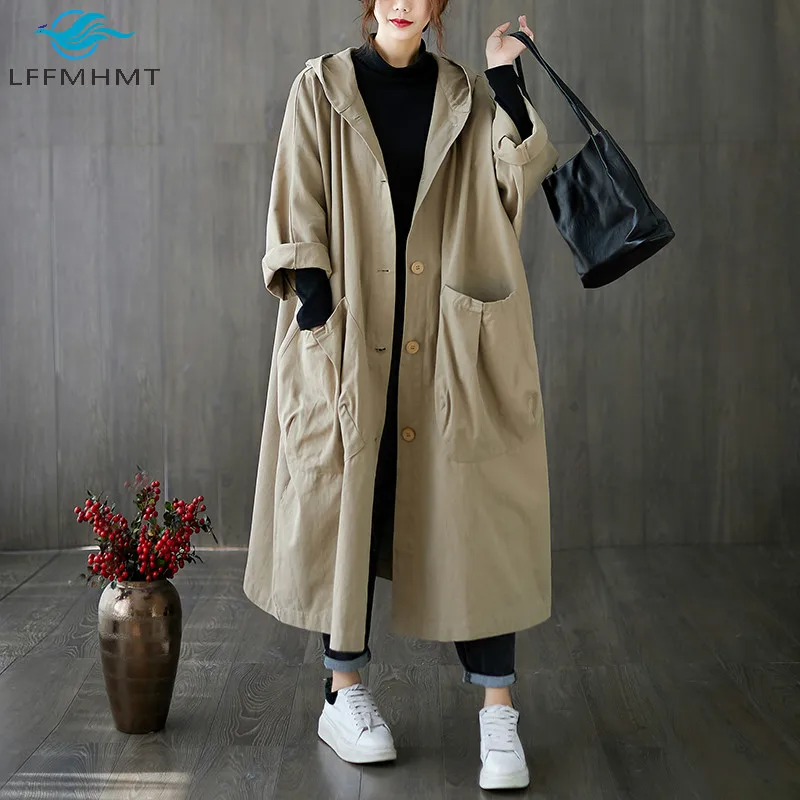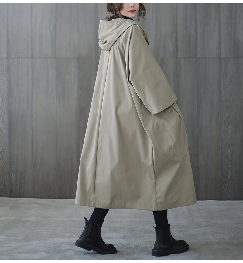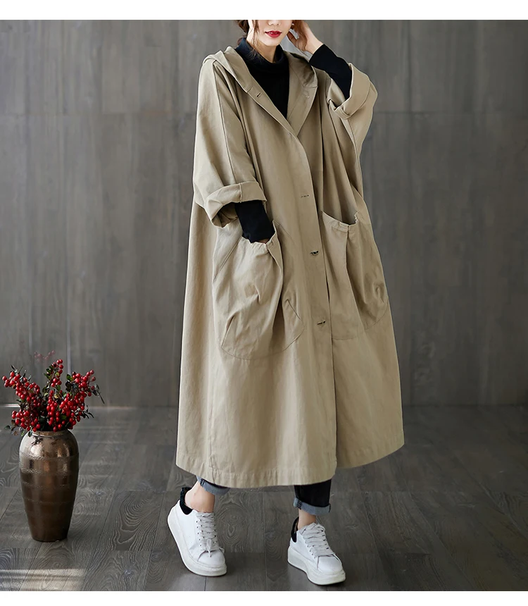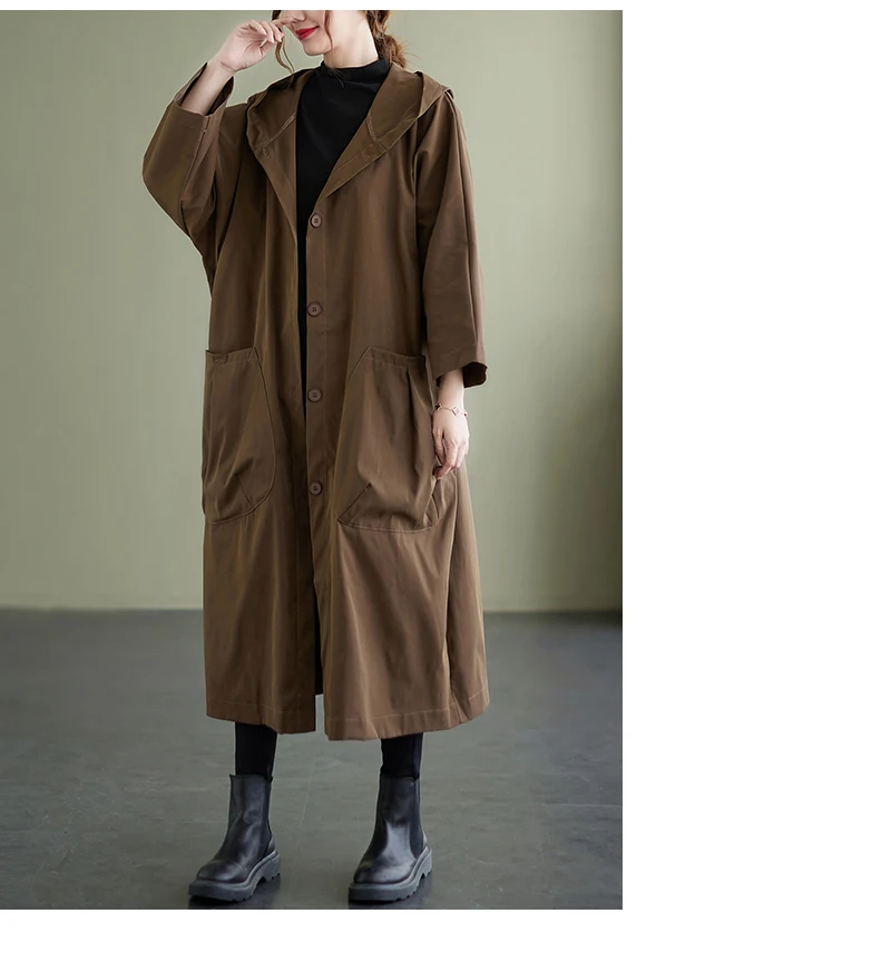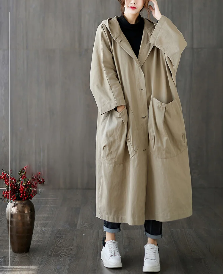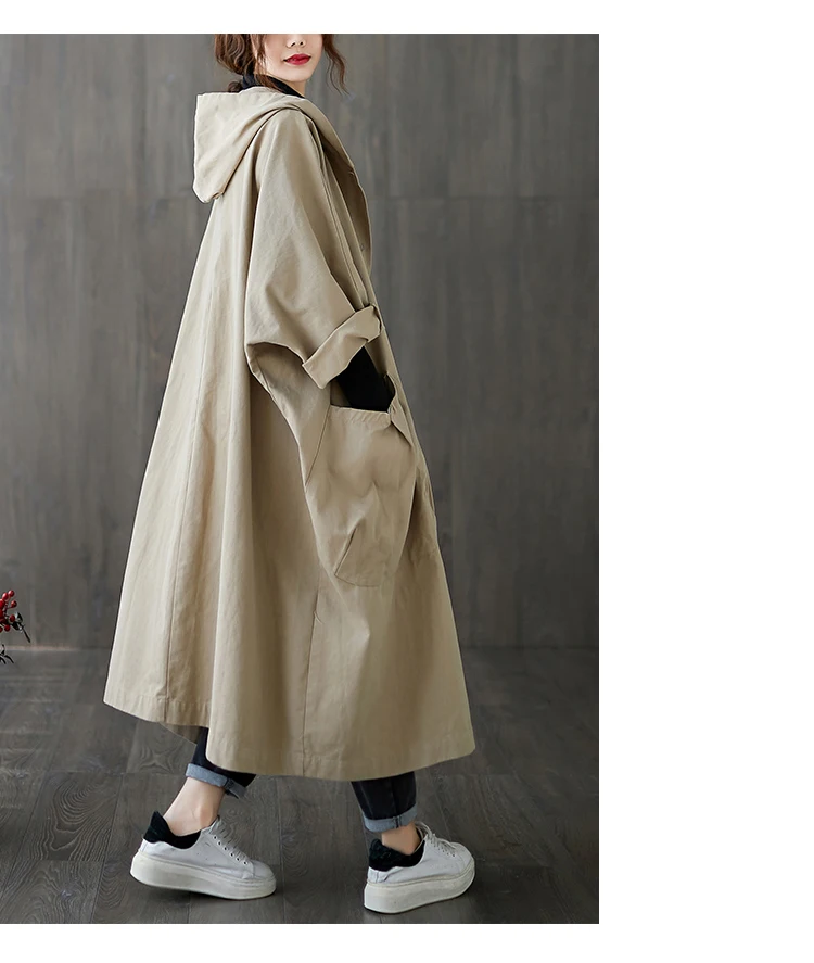 Тренч Женский мешковатый с капюшоном, большими карманами, длинными рукавами, в офисном стиле, свободного кроя, в Корейском стиле, на осень и зиму