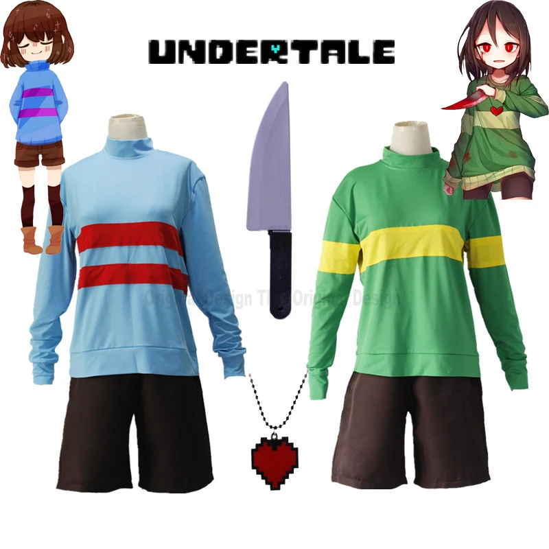 Игры Undertale фриск Чара косплей костюм набор одежды с высоким воротником, толстовка, куртка, шорты комплекты нож с подвеской в форме сердца с vCosplay опора