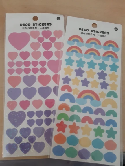 Наклейки очень красивые, уже везде их налепила. Пришли быстро - где-то за 2-3 недели. Цвета у наклеек приятные, они переливаются, если на них падает свет. Буду ещё заказывать такие, продавцу спасибо большое!