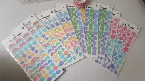 cute and colorful stickers, really nice for planners! i"? using them very often. the glitters are very pretty