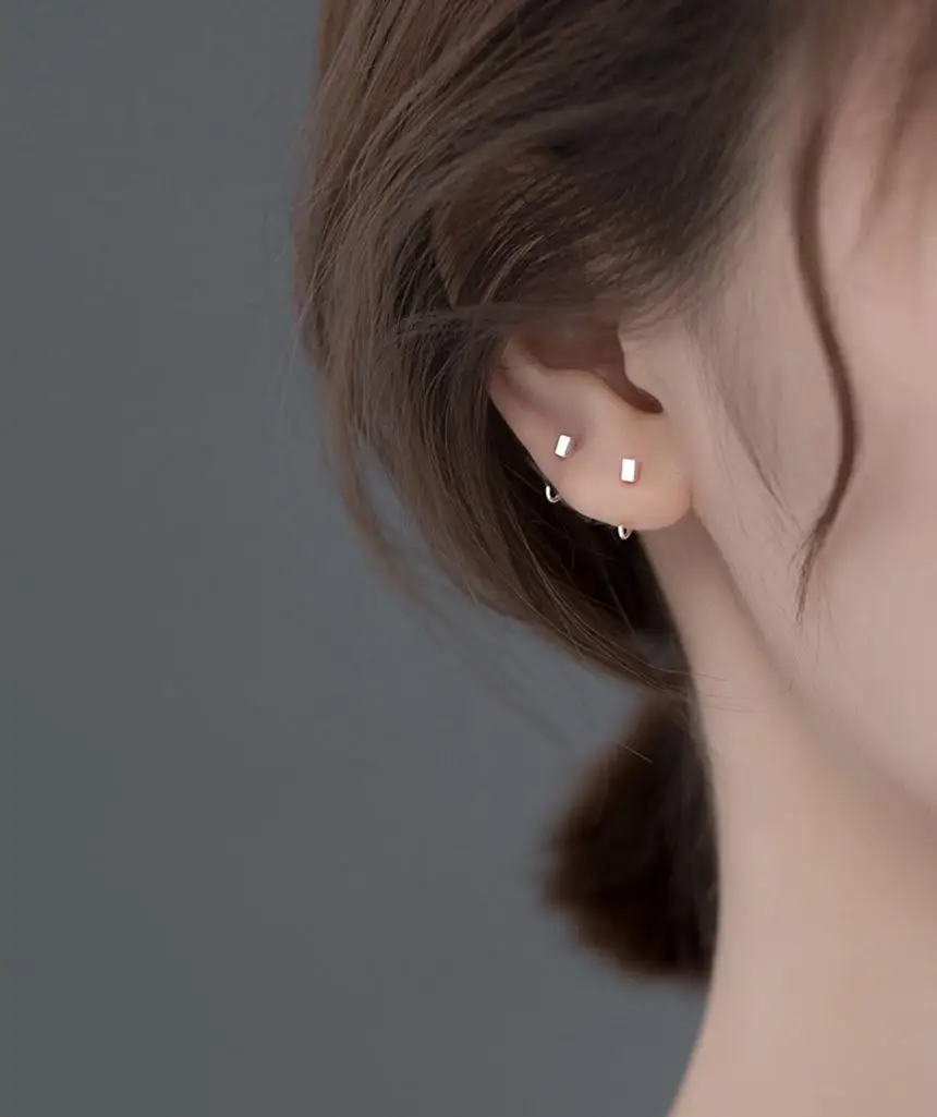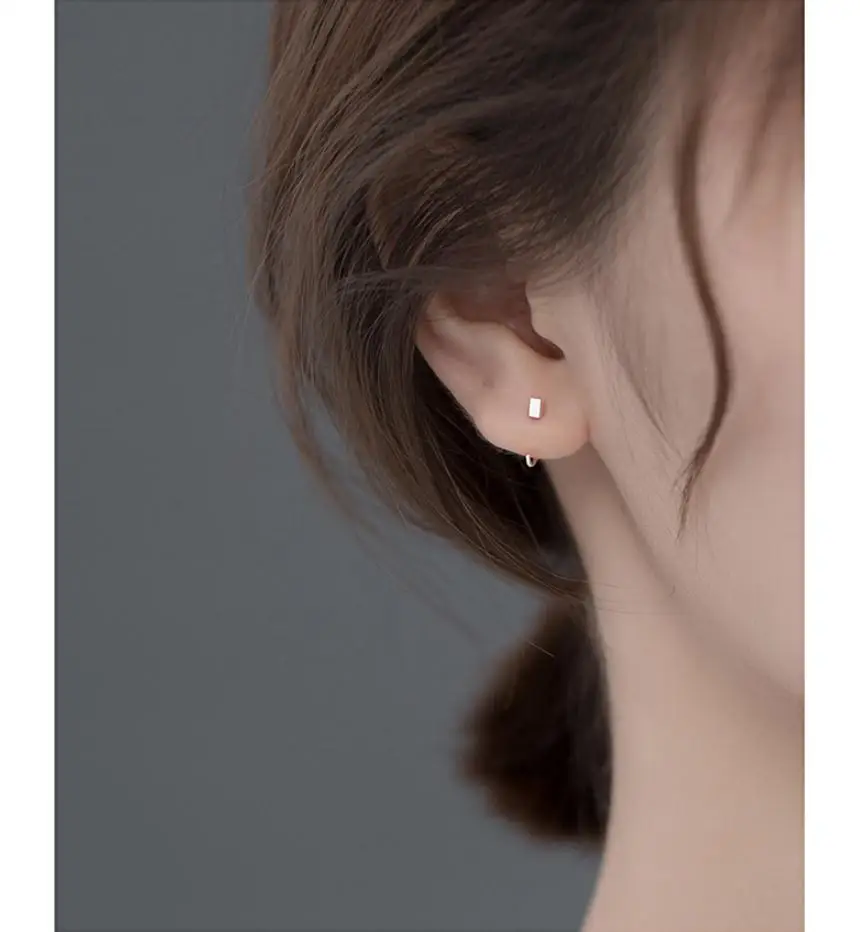 Минималистичные женские обруч с маленьким кубиком, Серьги Huggie для женщин, обручи, крючки, квадратные ювелирные изделия из серебра 925 пробы