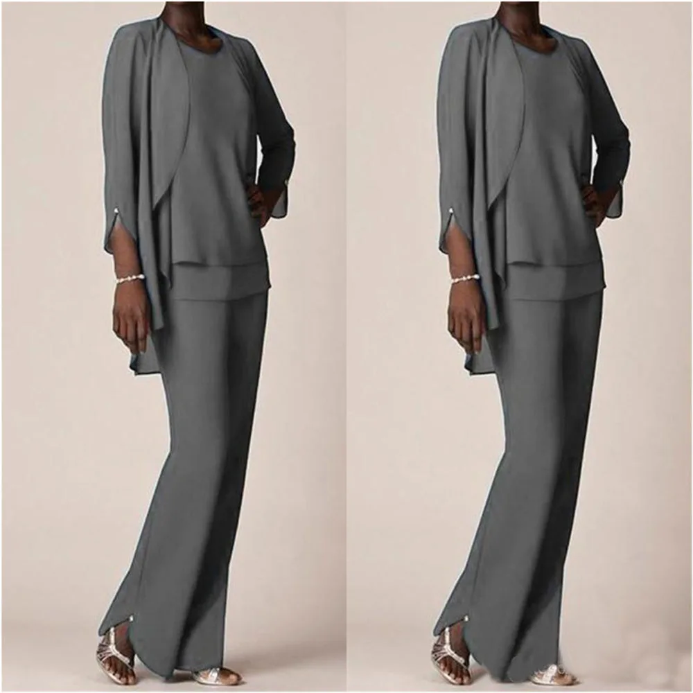 Шифоновые деловые брючные костюмы больших размеров с рукавом три четверти брюки женское платье для матери невесты на заказ без бретелек три предмета