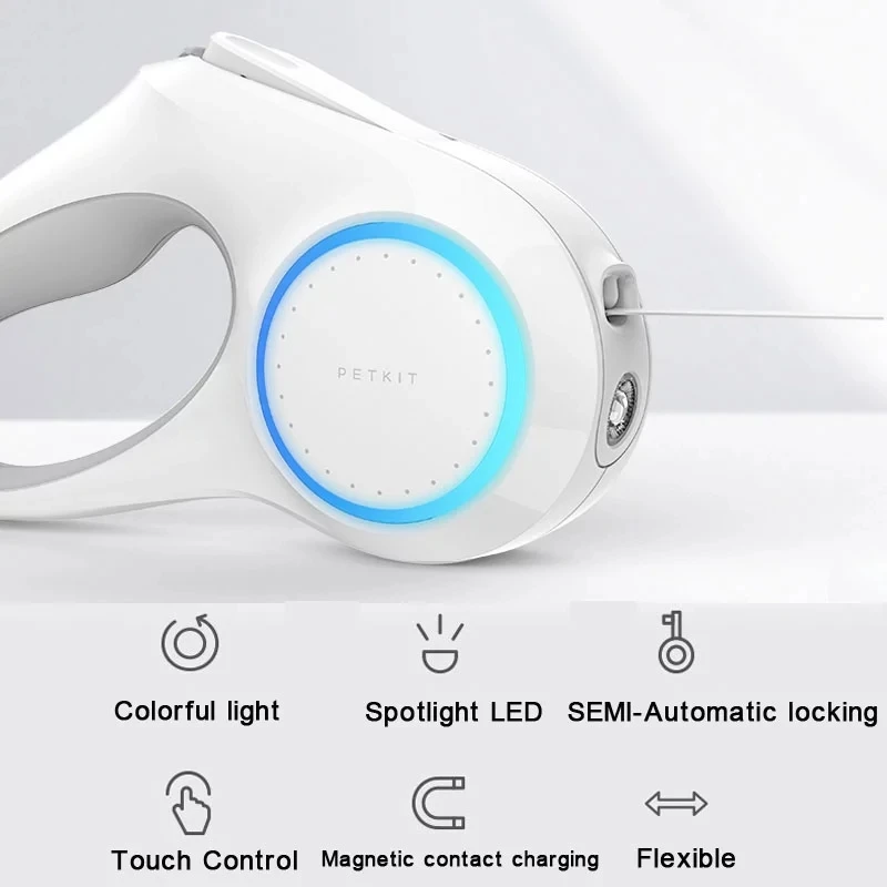 Поводок для собак Youpin PETKIT Go Shine, поводок с 2 кольцами для стримеров, налобный фонарь, точечный светильник, магнитный контакт, зарядка, светодиодный светильник