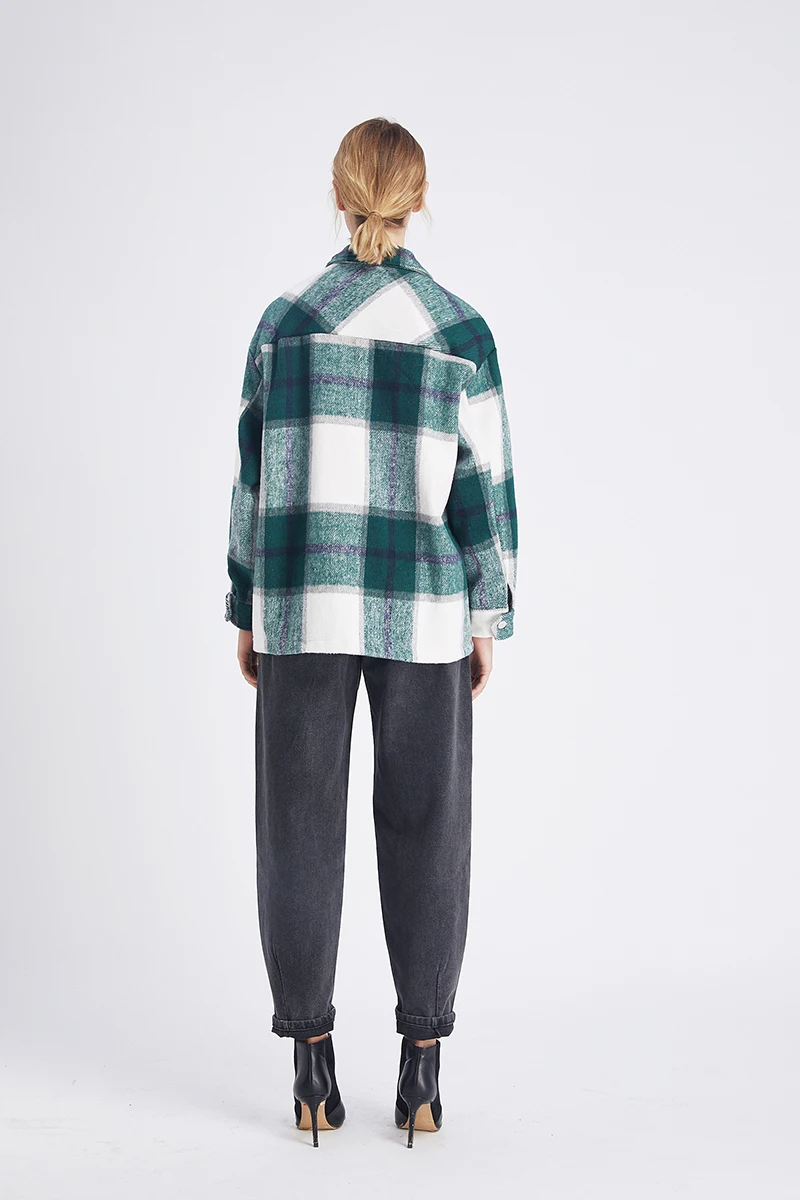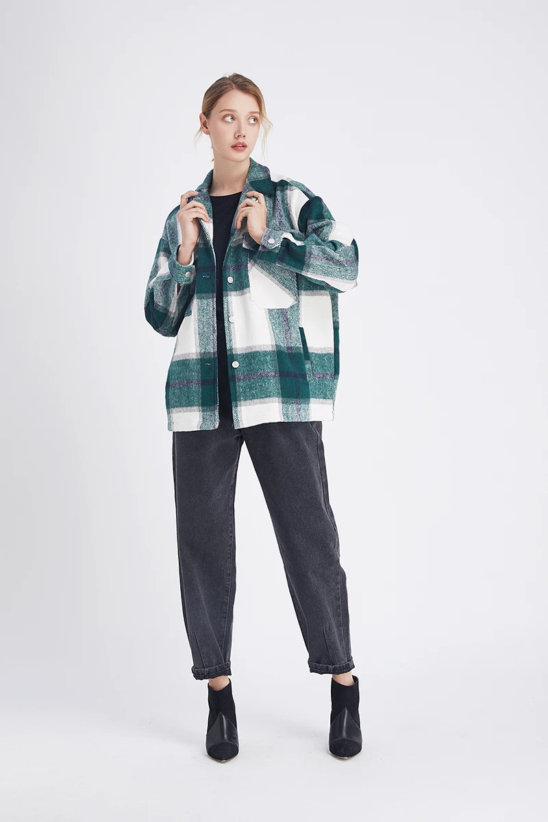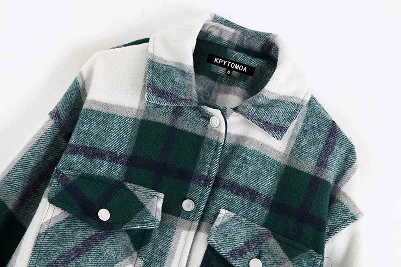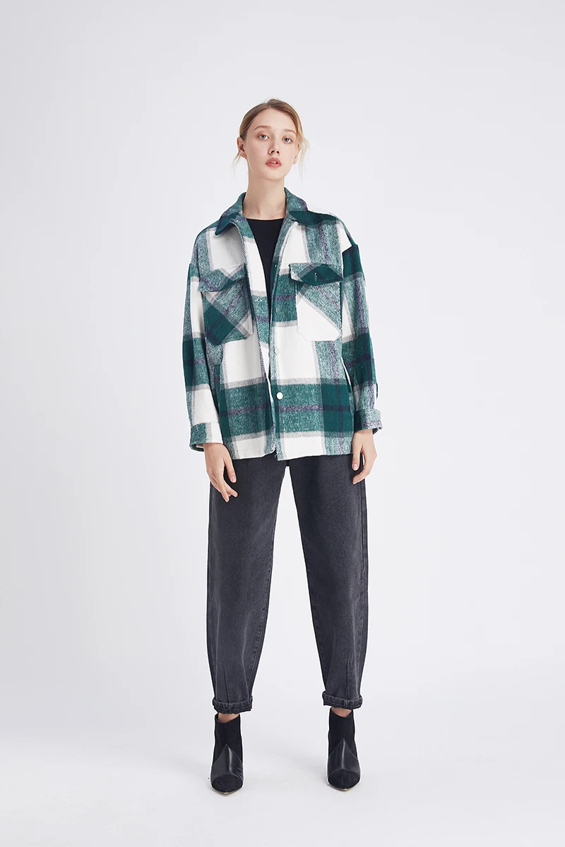 Женская клетчатая рубашка, зеленое пальто оверсайз с длинным рукаво...