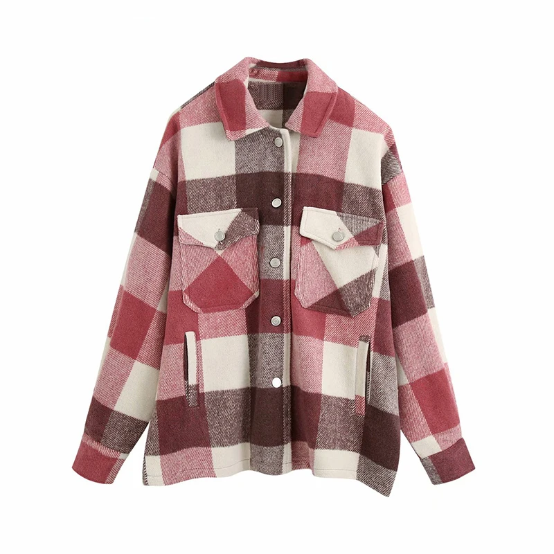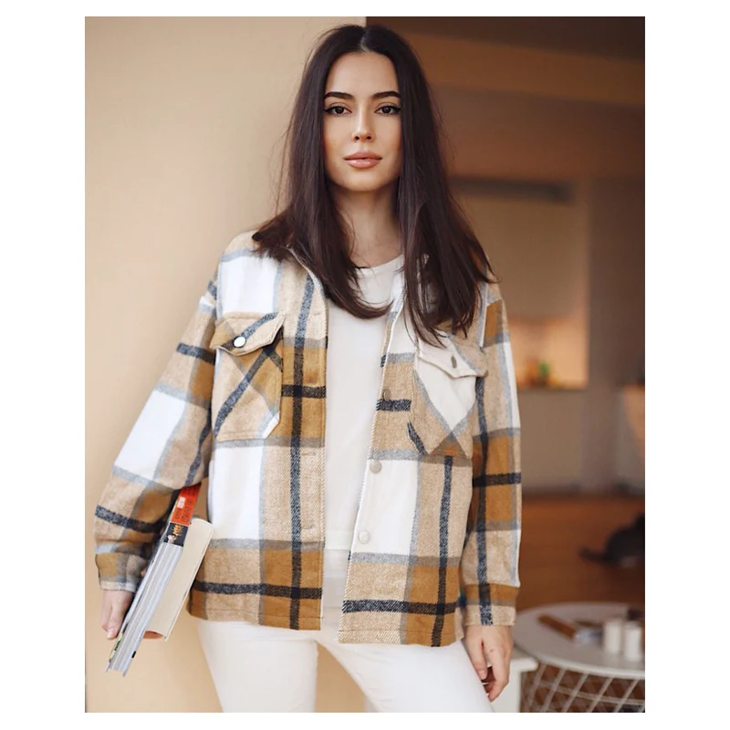 Женская Повседневная Свободная куртка в стиле ретро, шикарный топ оверсайз с отложным воротником и длинным рукавом, осенне-зимняя клетчатая рубашка, 2021
