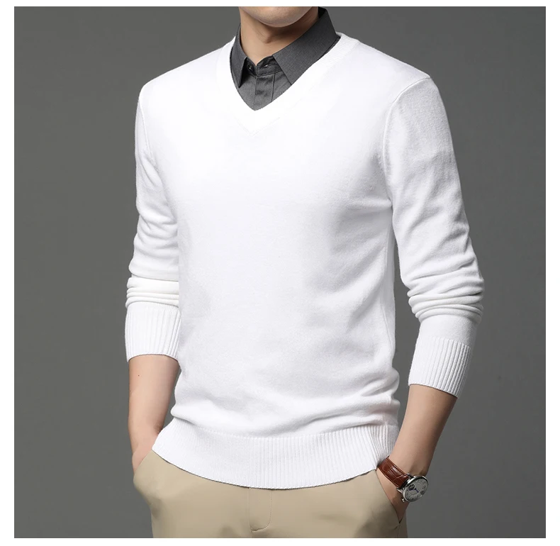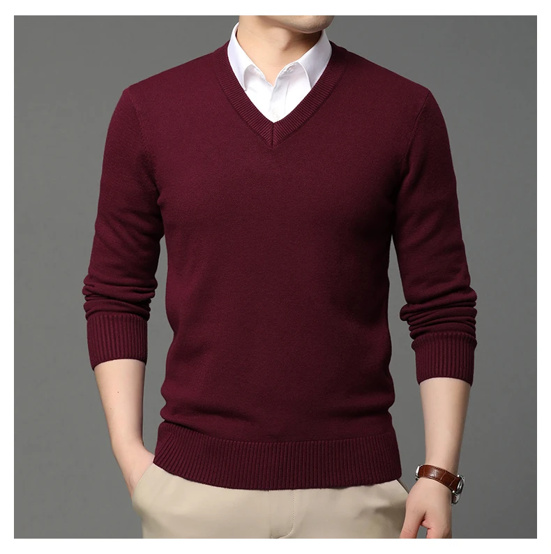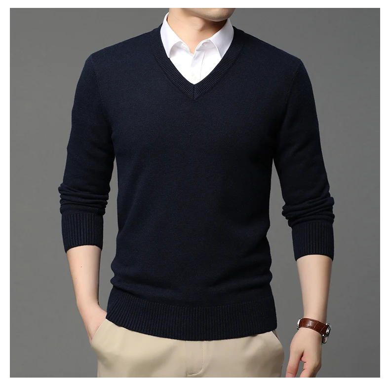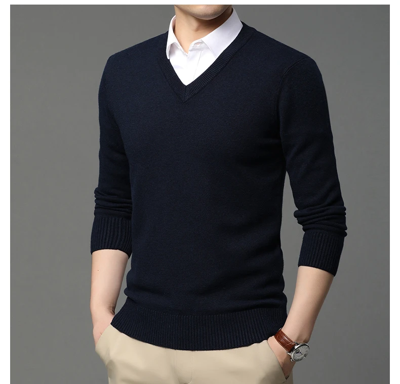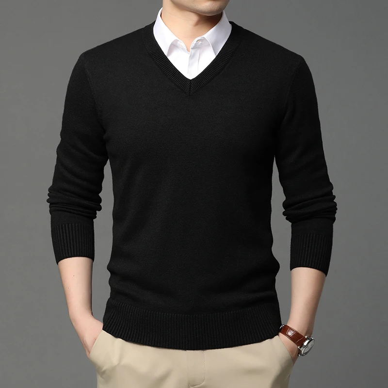 Мужской шерстяной вязаный пуловер, Черный Повседневный джемпер с V-образным вырезом, одежда для осени и зимы, 2022