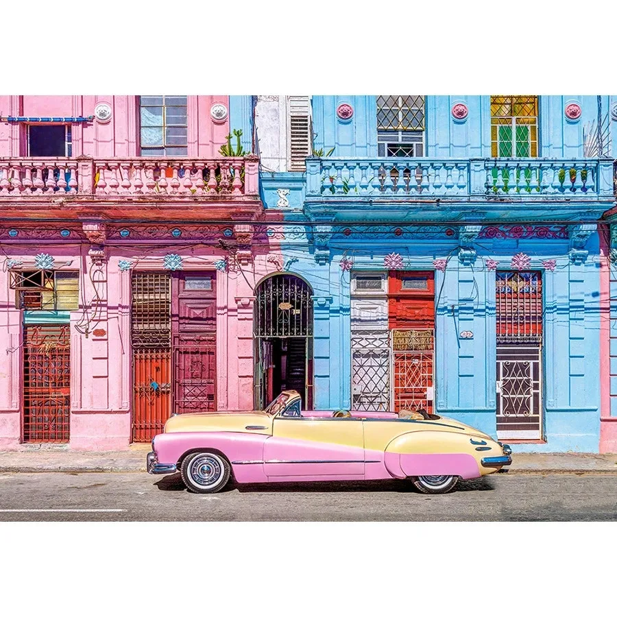 Алмазная картина с квадратнымикруглыми стразами E1402, картина сделай сам с изображением Розового автомобиля на Кубы, 5D мозаика, украшение в подарок