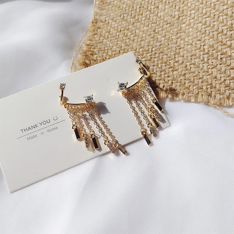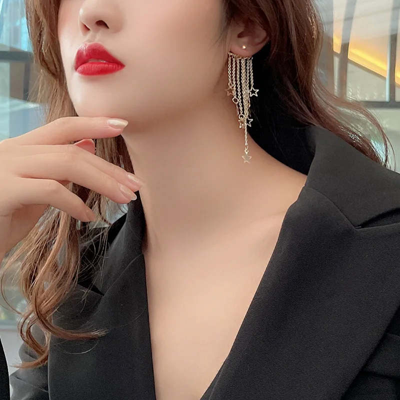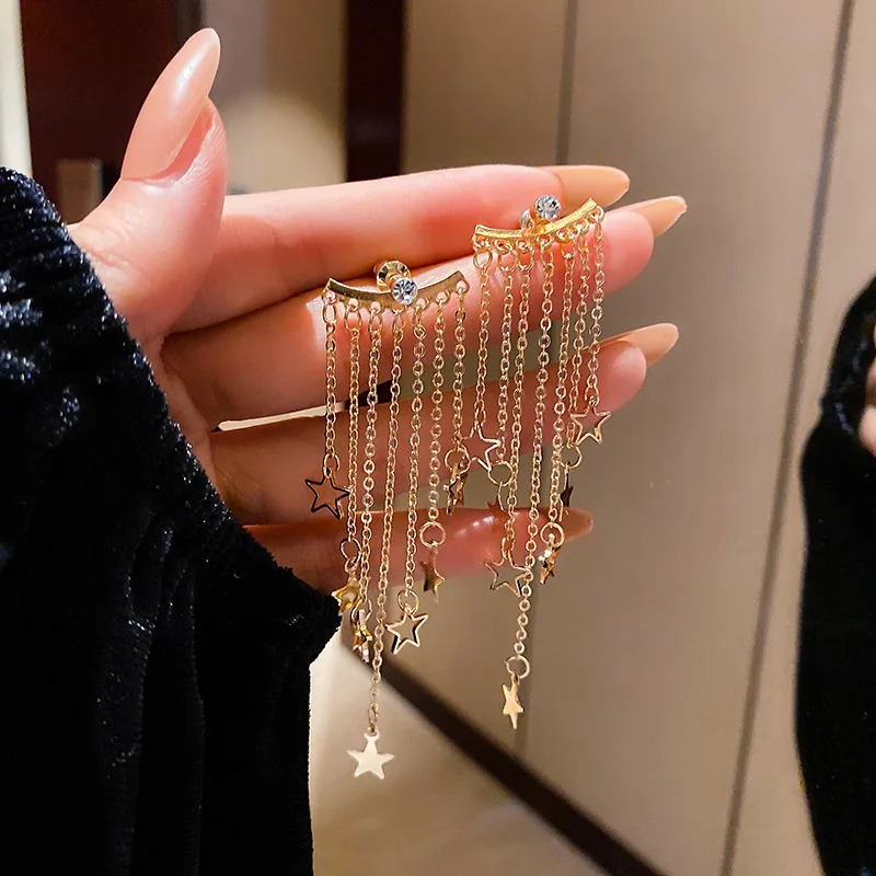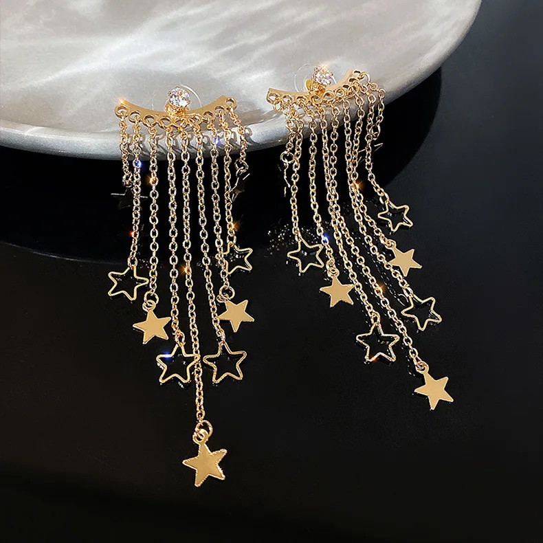 Золотые висячие серьги с пятиконечными звездами и кисточками, яркие темпераментные серьги из циркония, корейские женские модные серьги