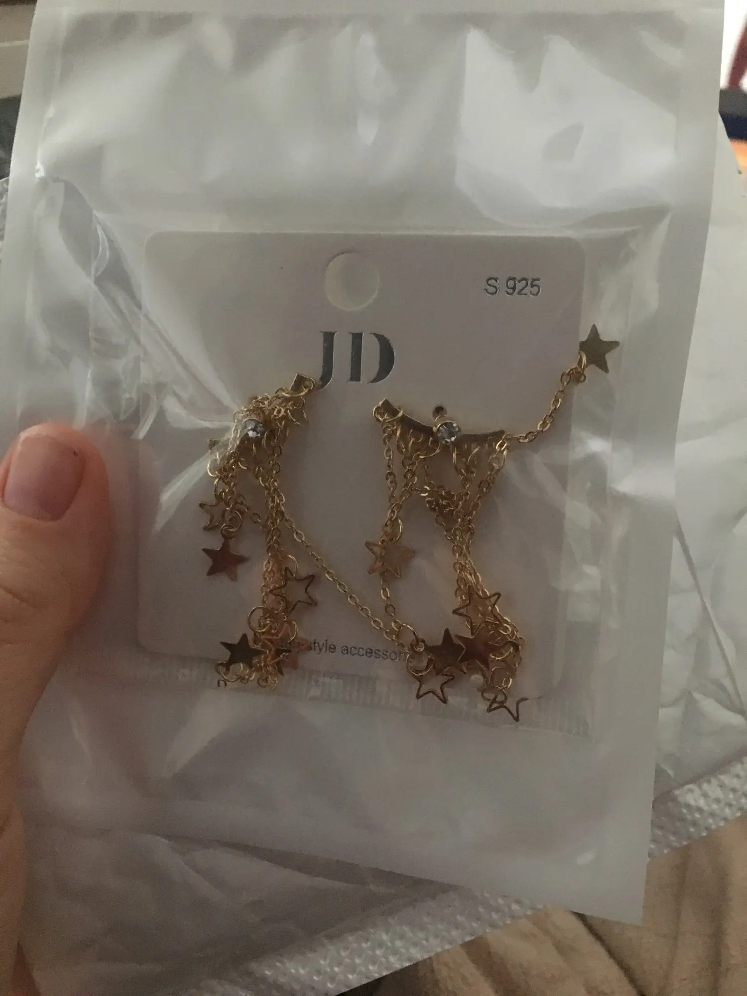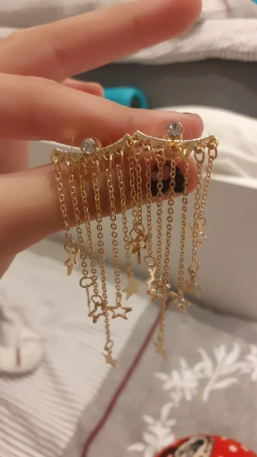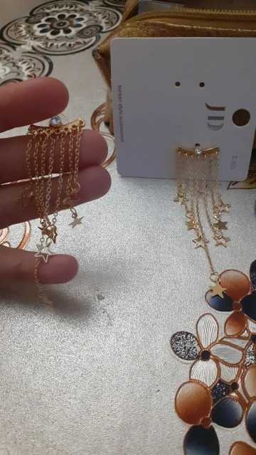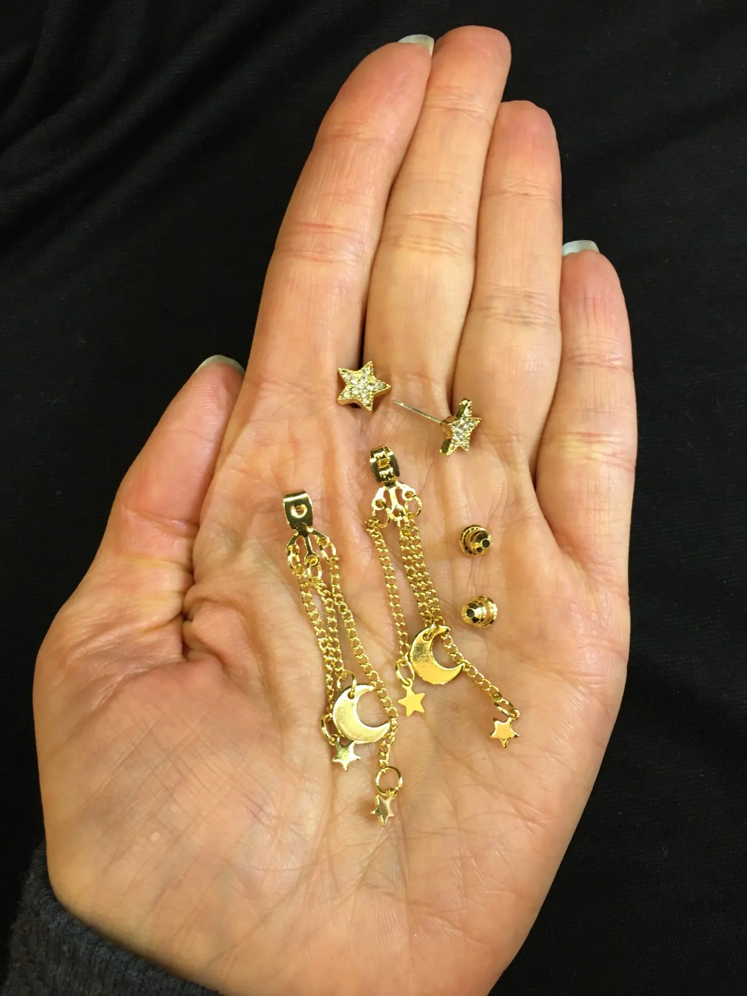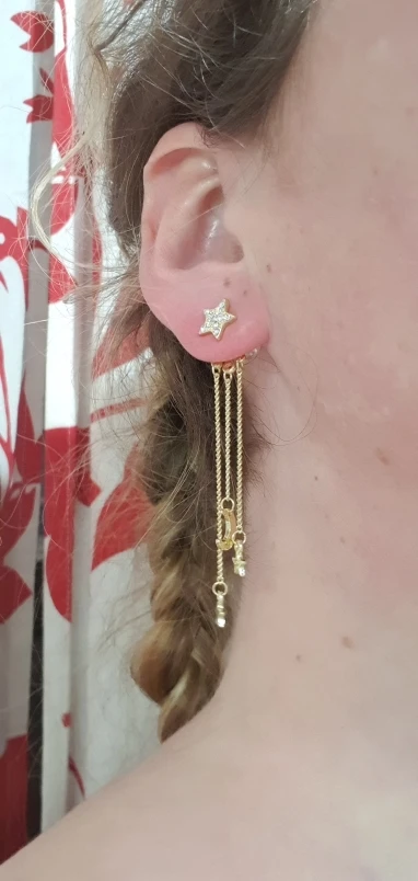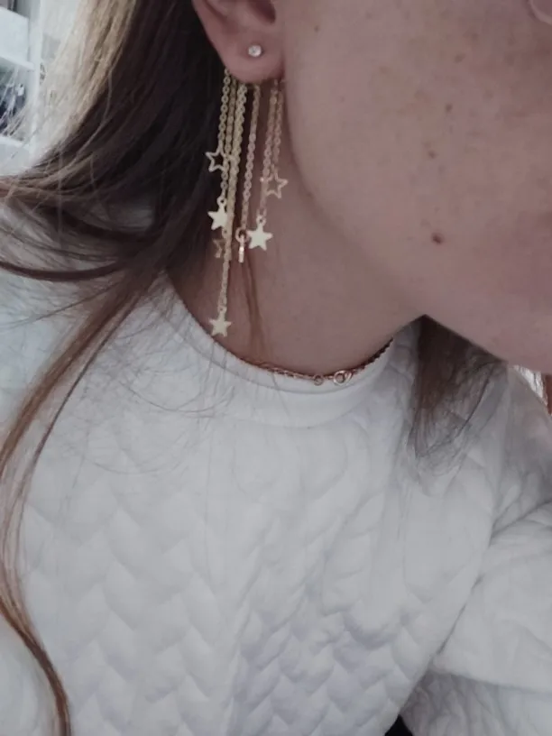 Красивые серьги. Застежка подходит для любого правого пирсинга! Так что это застежка, которая держит маленькие звезды и луну... к счастью, она плотно прилегает, поэтому не должна падать .... в противном случае мы теряем все интересы драгоценного камня! Доставлено очень быстро и хорошо упаковано в пузырчатую пленку. Я отмечаю 8/10, потому что качество не кажется мне ужасным...