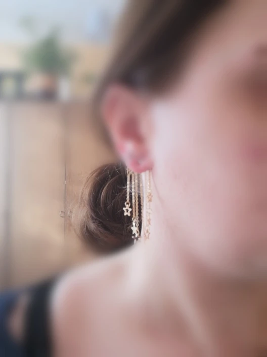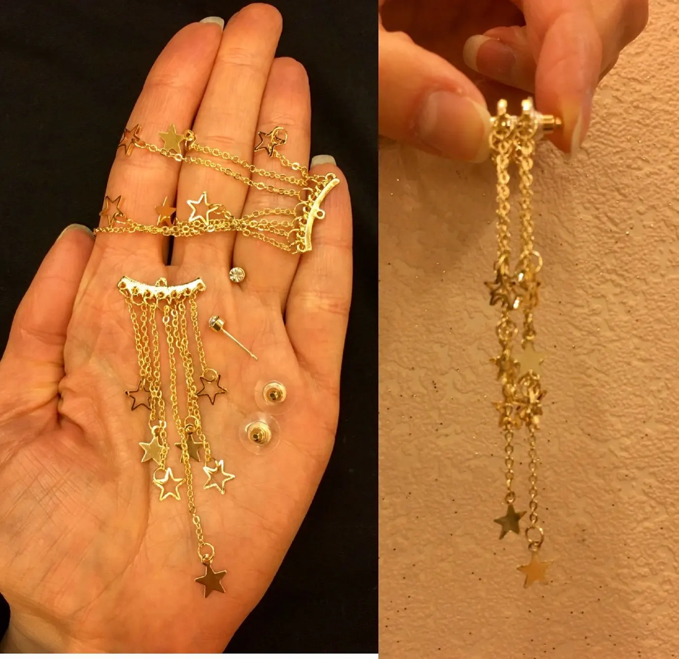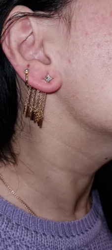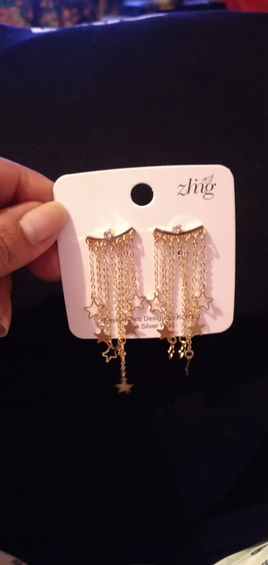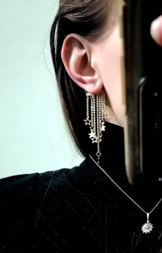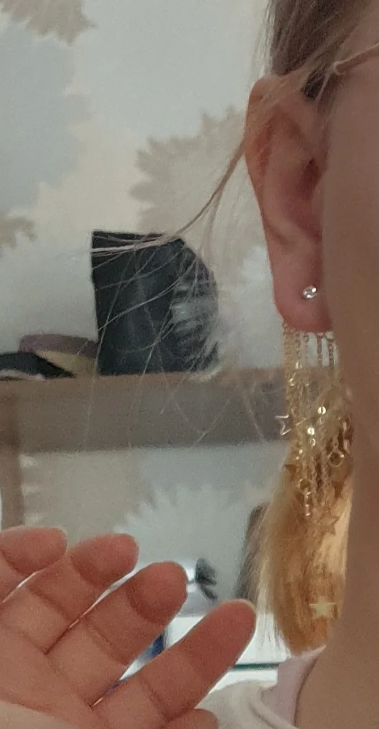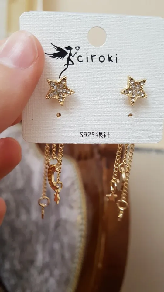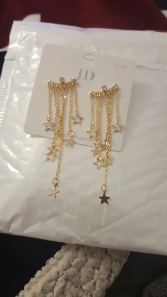 Красивые серьги. Застежка подходит для любого правого пирсинга! Так что это застежка, которая держит маленькие звезды и луну... к счастью, она плотно прилегает, поэтому не должна падать .... в противном случае мы теряем все интересы драгоценного камня! Доставлено очень быстро и хорошо упаковано в пузырчатую пленку. Я отмечаю 8/10, потому что качество не кажется мне ужасным...