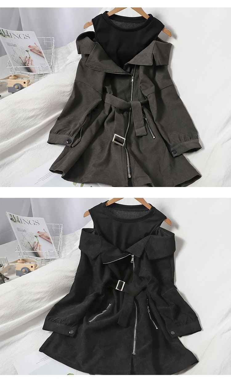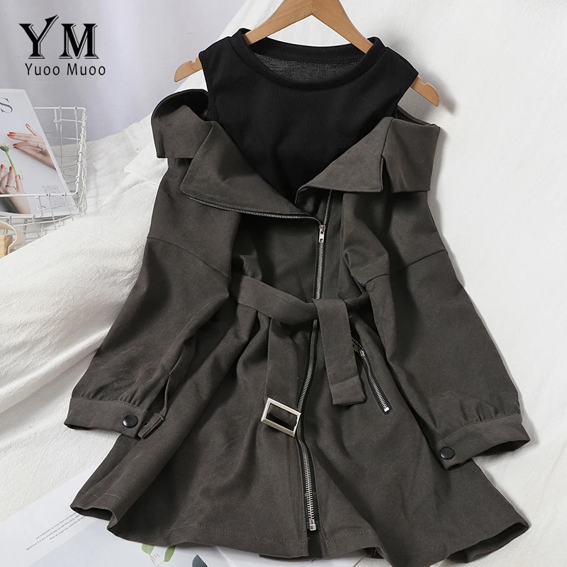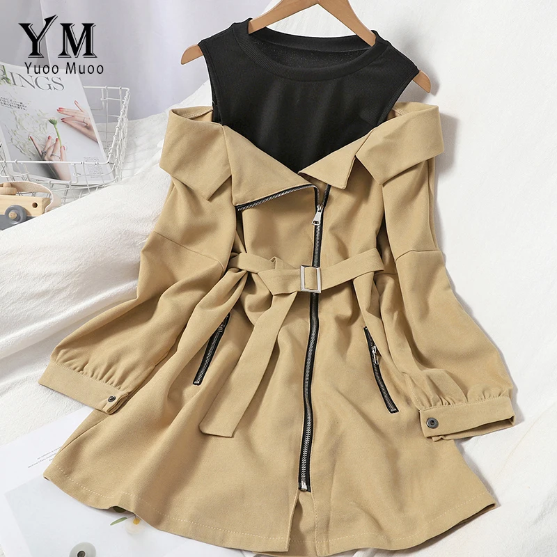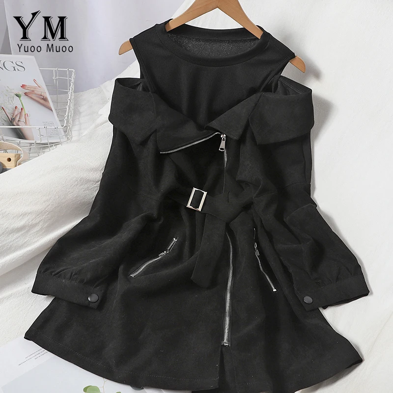 Новое Осеннее женское платье YuooMuoo, корейское модное дизайнерское короткое платье на молнии с поясом, женское Повседневное платье-трапеция, платья