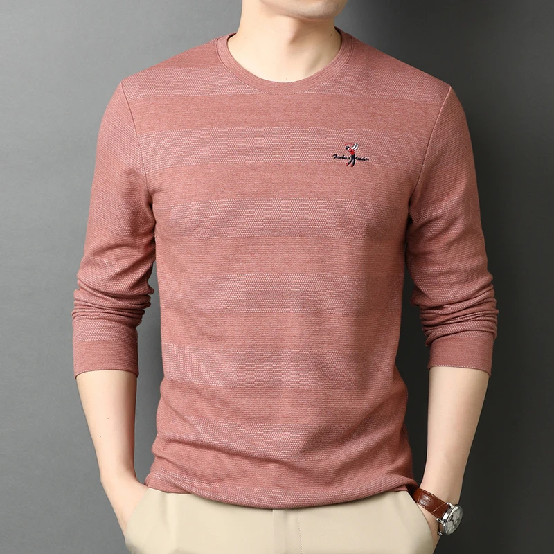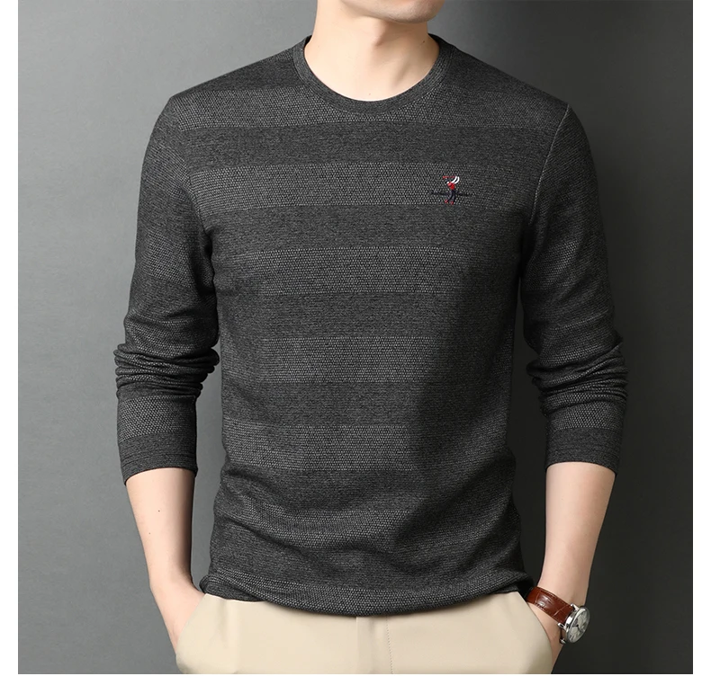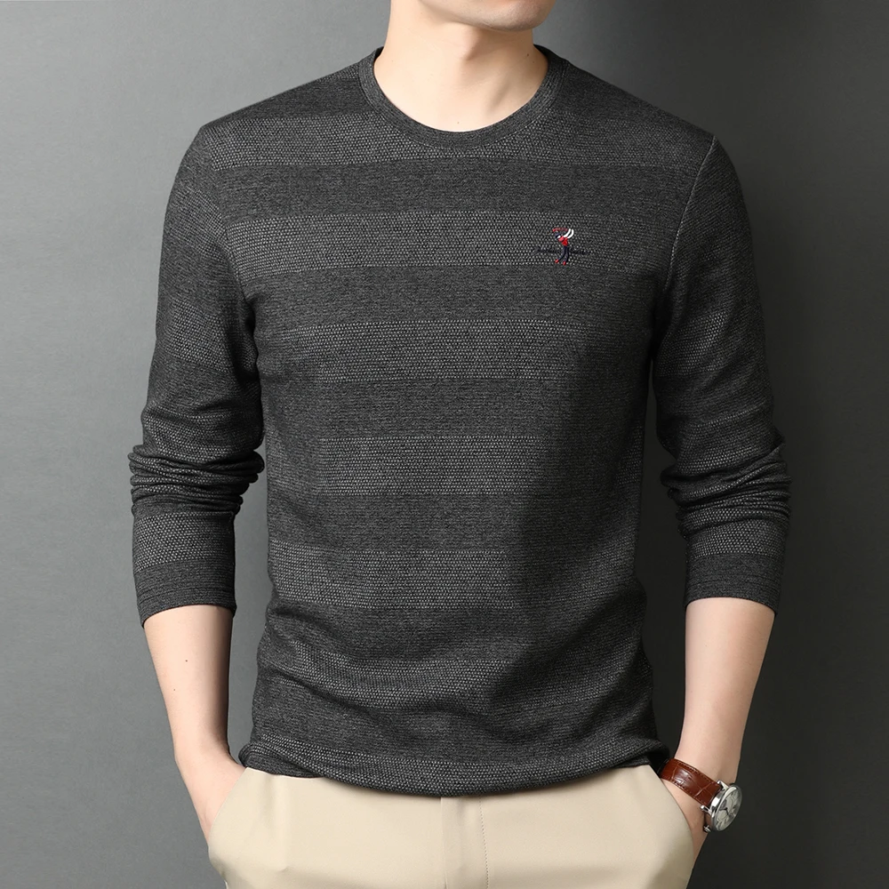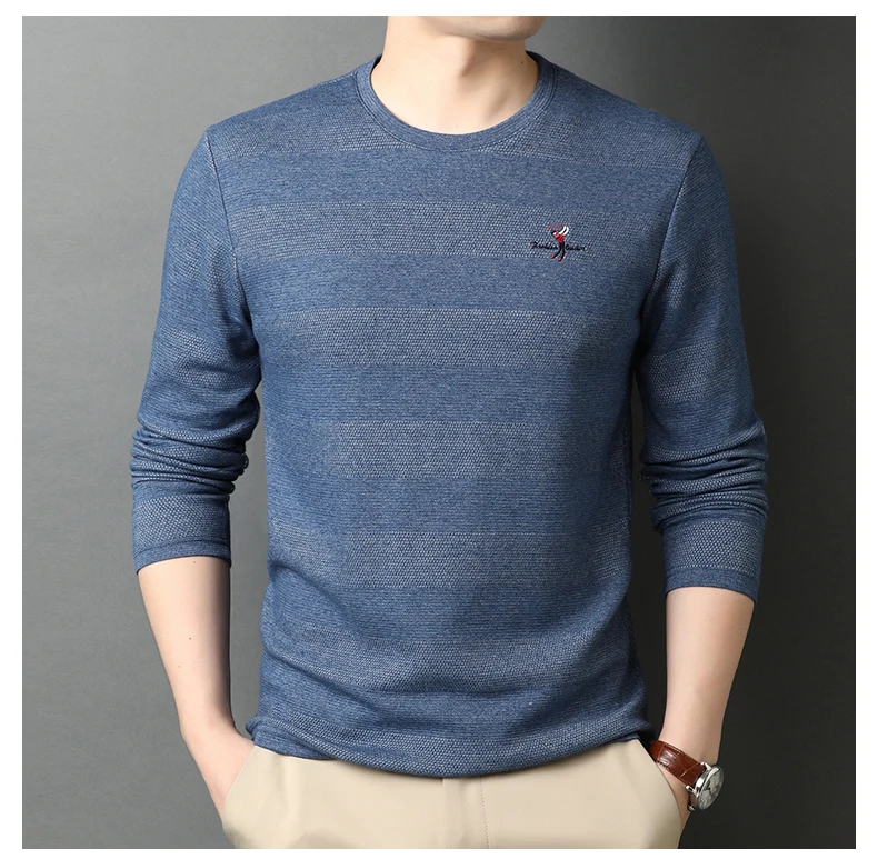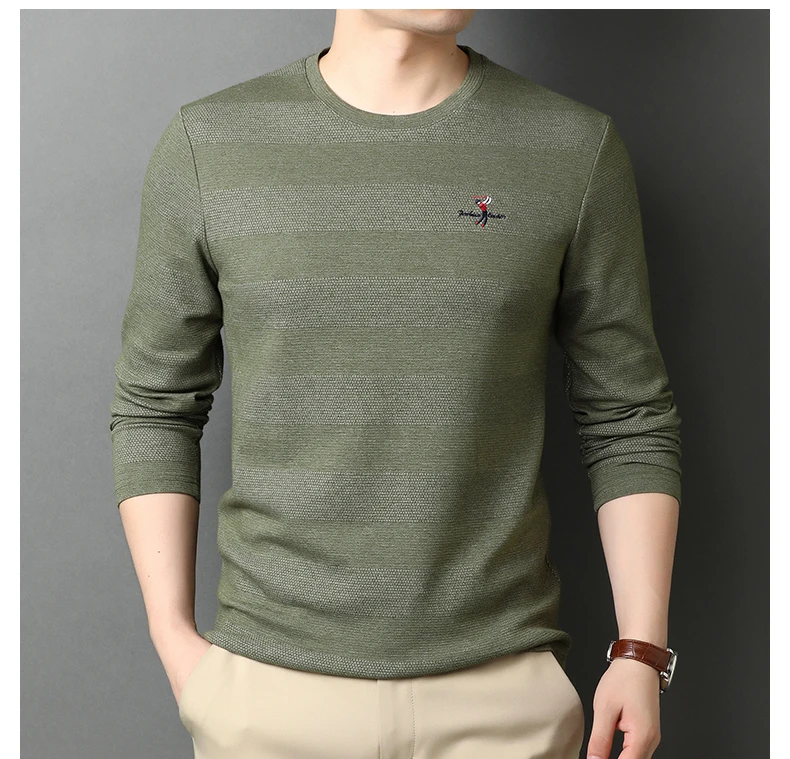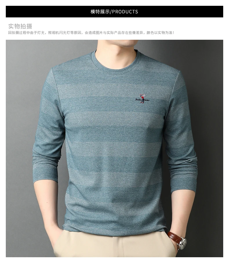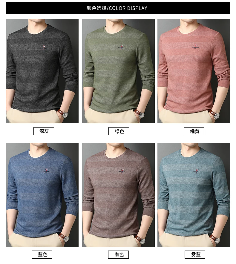 Топ Класс 2021 новый модный бренд тяжелый носки в полоску с круглым вырезом для мужчин Slim Fit футболка с длинным рукавом, с длинным рукавом, Мужская одежда, топы на каждый день мужская одежда