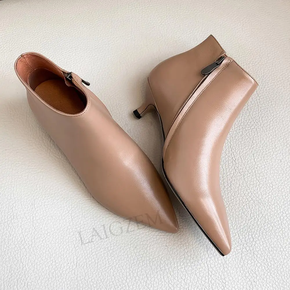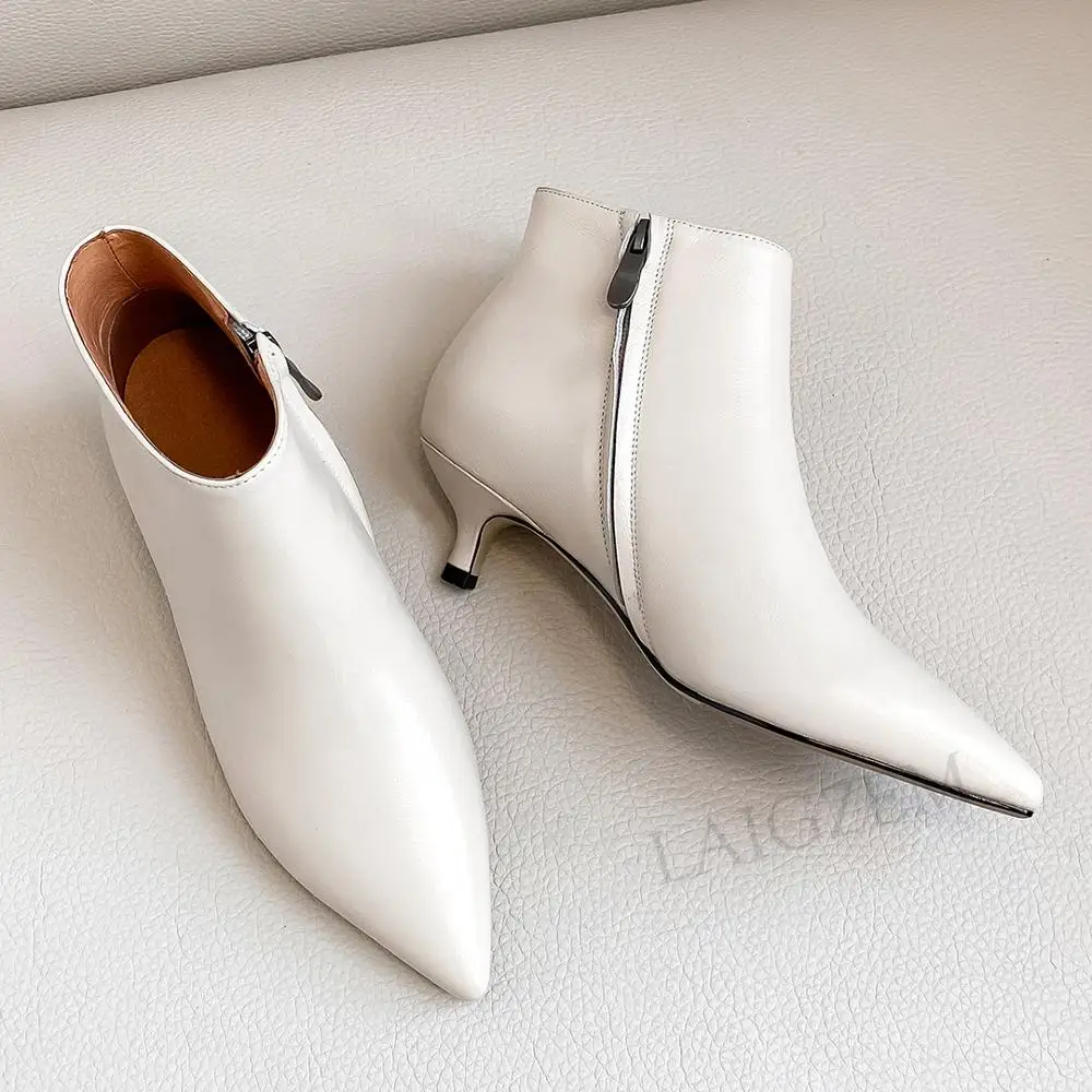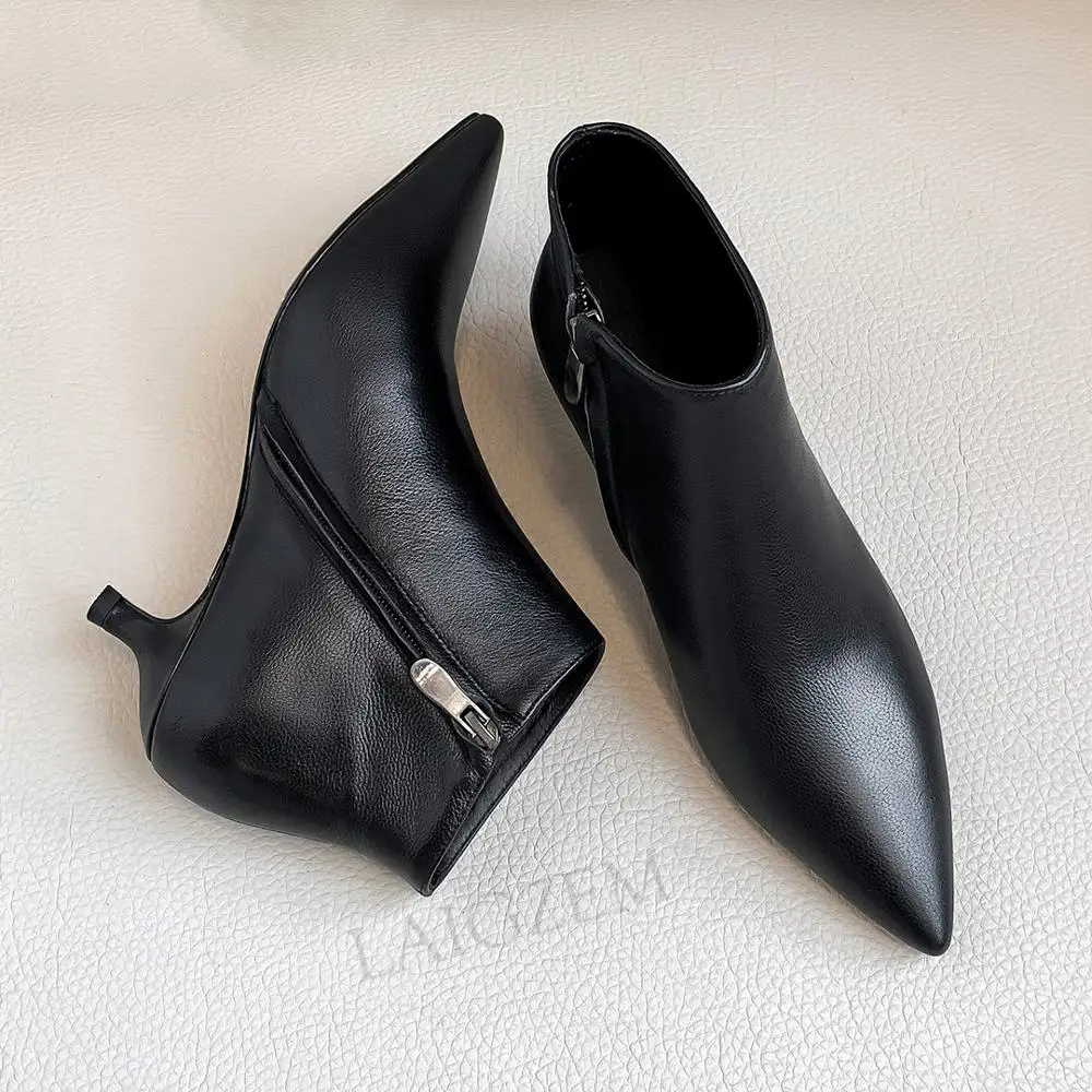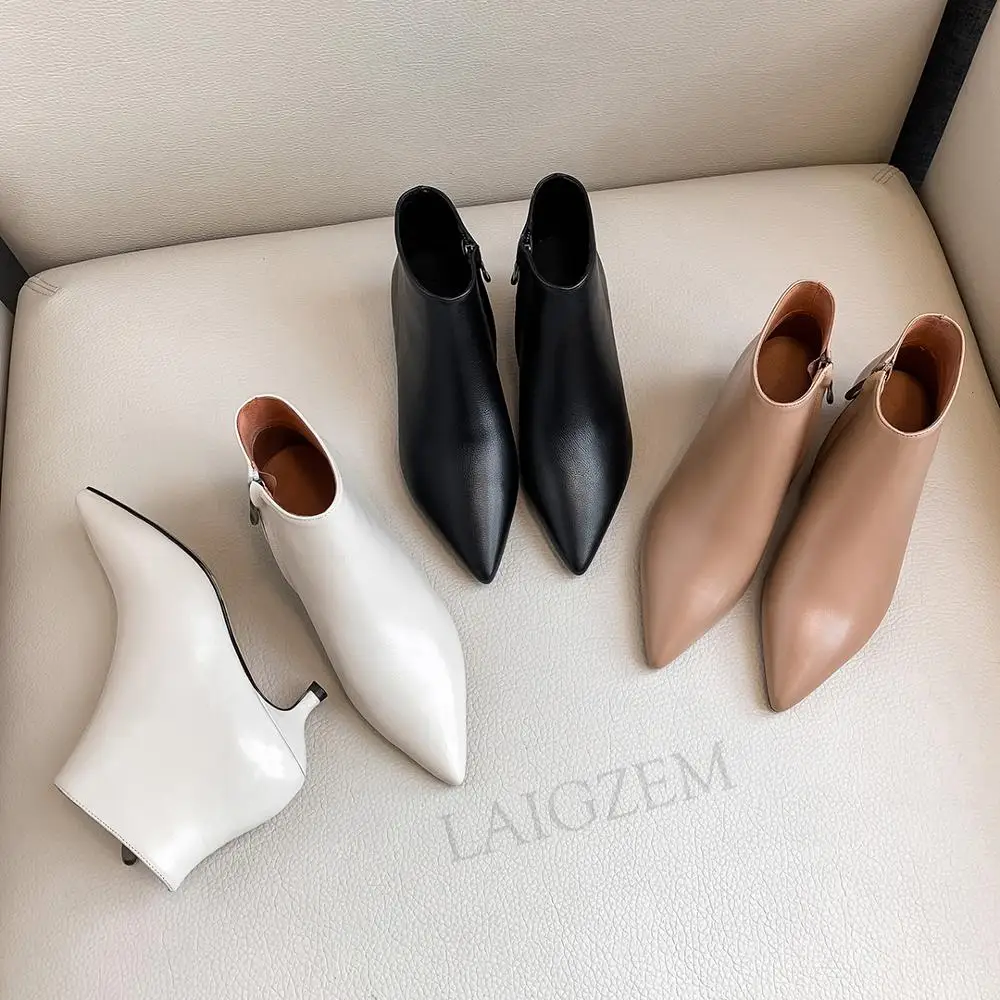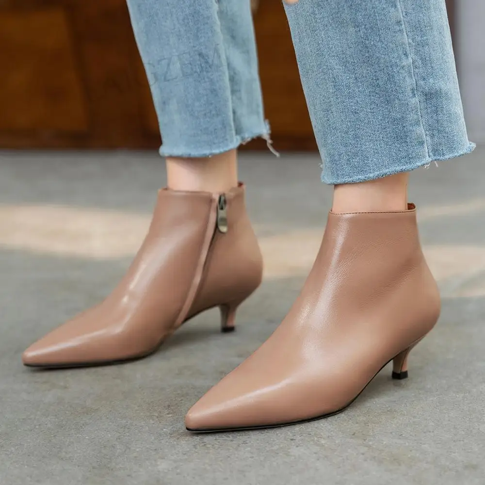 Женские ботинки из натуральной кожи, на шпильке, с боковой молнией,...