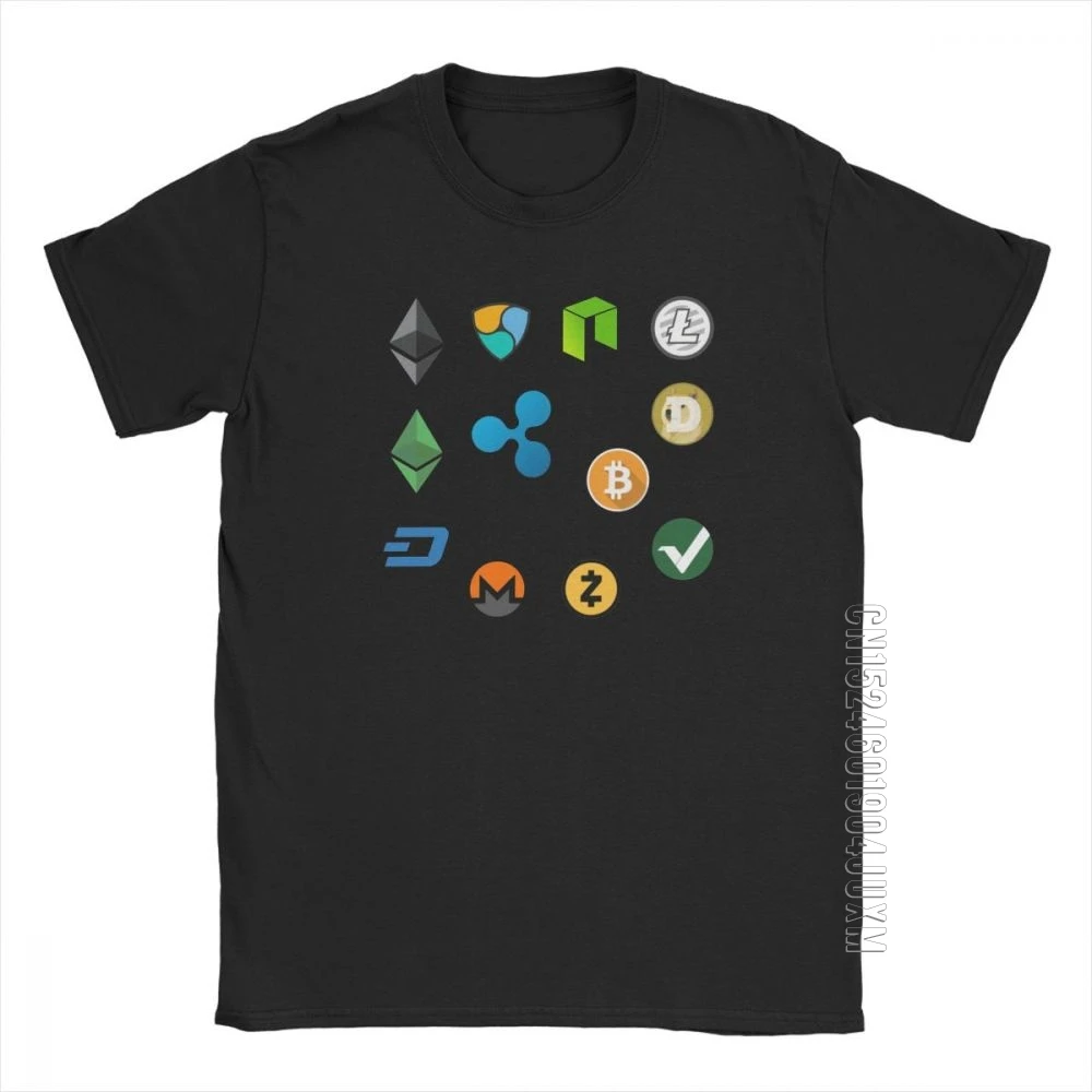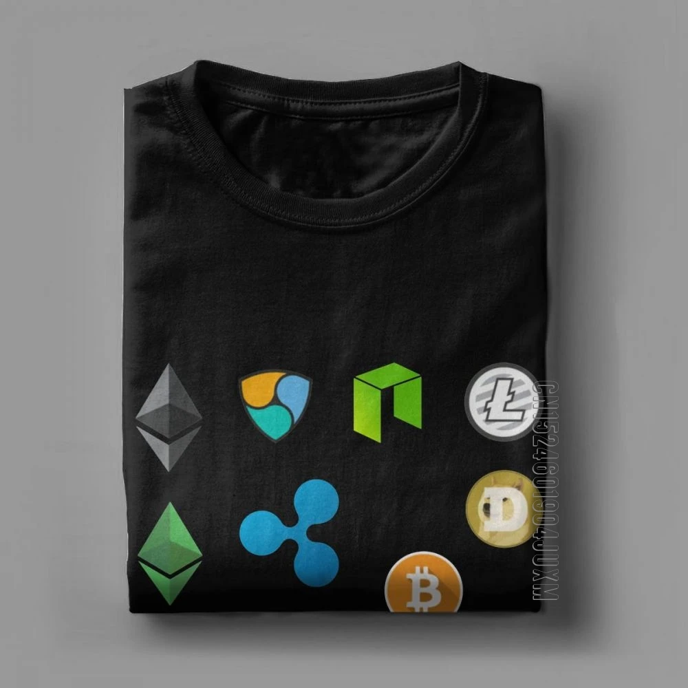 Футболки для майнинга биткоинов, вилок, эфириума, нео-литмонет, криптовалюты, Дэш, неодимоне, деньги, деньги, 100% хлопок