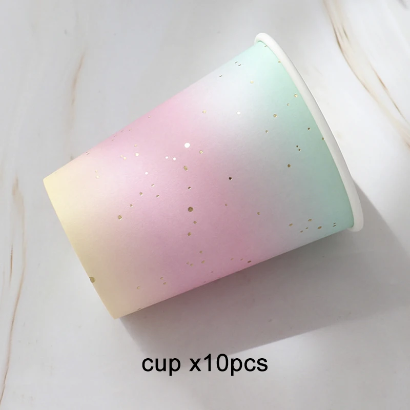 Набор одноразовой посуды градиент цвета радуги, украшение в горошек, бумажная тарелка, соломинка, для свадьбы, дня рождения, вечеринки