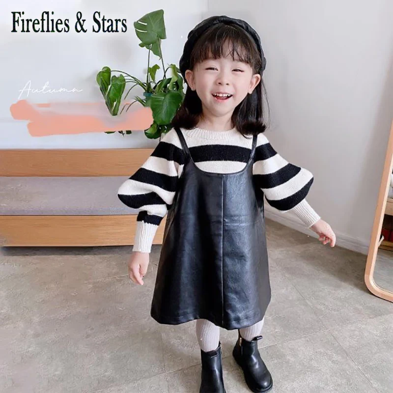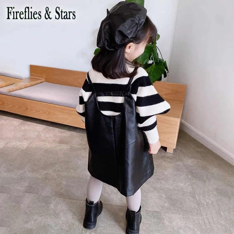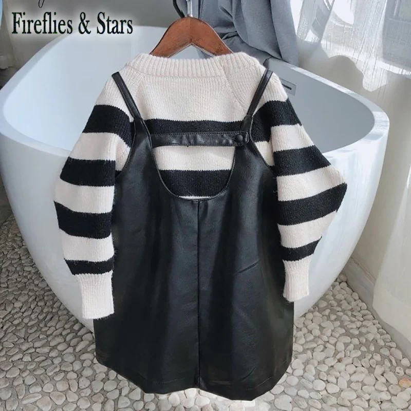 Комплект из Свитера и платья из ПУ кожи для девочек 2-7 лет
